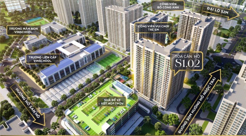 Với mỗi căn hộ thuộc tòa S1.02, khách hàng sẽ được nhận gói Smart Home tiêu chuẩn Gold (theo tiêu chuẩn công bố bởi Vsmart) tích hợp sẵn. Ngoài ra, tất cả khách hàng mua căn hộ tại đây sẽ được tặng voucher trị giá đến 200 triệu đồng để sở hữu các dòng xe ôtô mang thương hiệu VinFast. Tòa căn hộ S1.02 dự kiến được bàn giao vào tháng 11 năm nay.