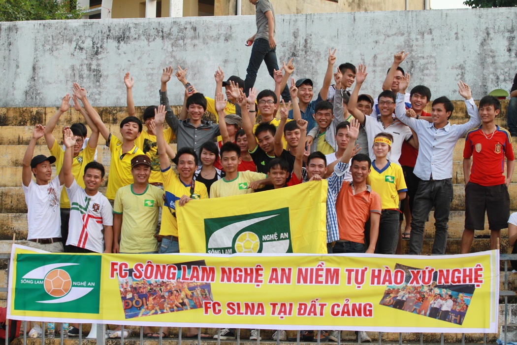 Một nhóm CĐV của SLNA tới sân Lạch Tray cổ vũ trong cuộc thư hùng giữa SLNA và Vĩnh Long chiều 27/9.