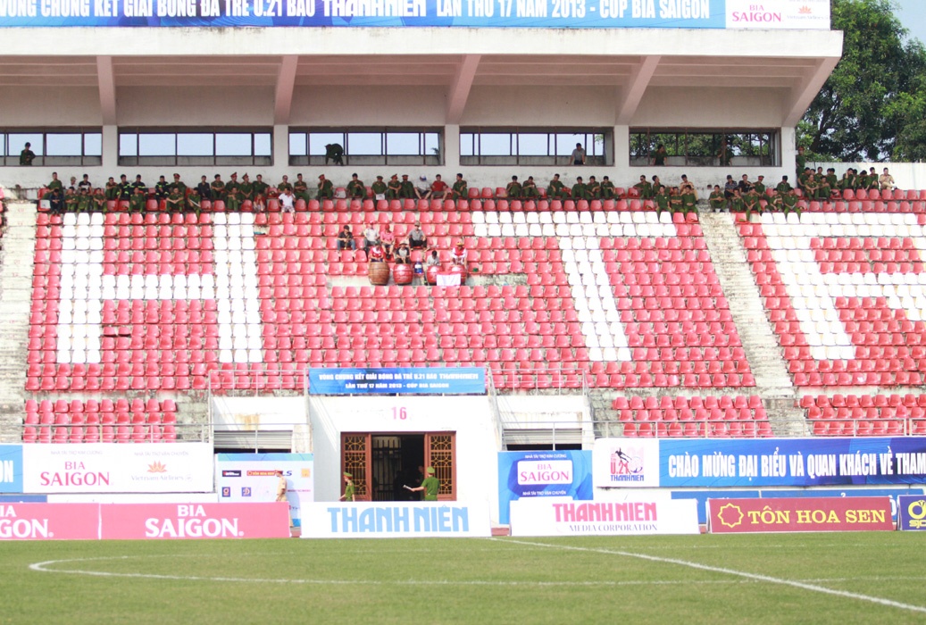 Tuy nhiên, tính toán trên đã bất thành. Sân Lạch Tray "mất lửa", số CĐV tới sân rất ít. Trong hình lực lượng an ninh chơi dài trên khán đài B chiều 27/9.