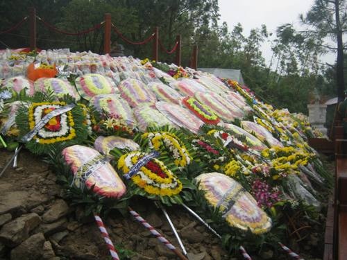 Vòng hoa được xếp ngay ngắn trước khu mộ