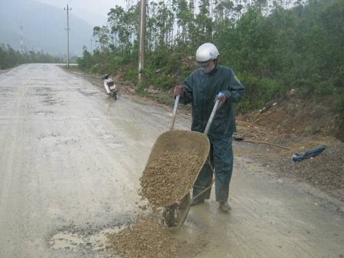 | Lực lượng bộ đội biên phòng đội mưa hướng dẫn du khách. |