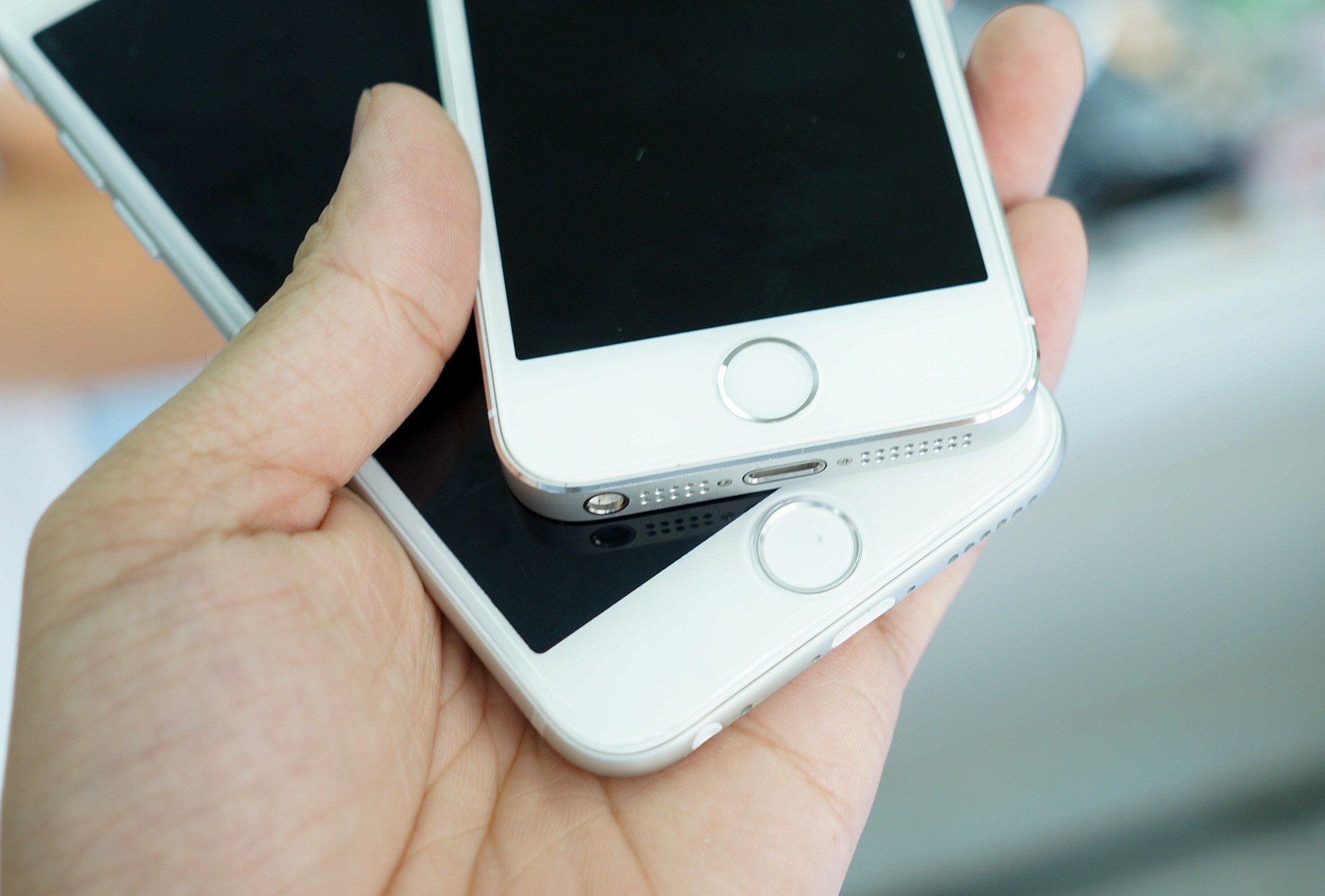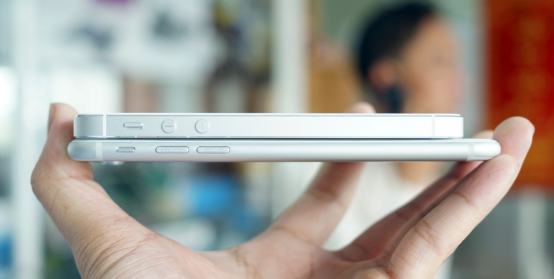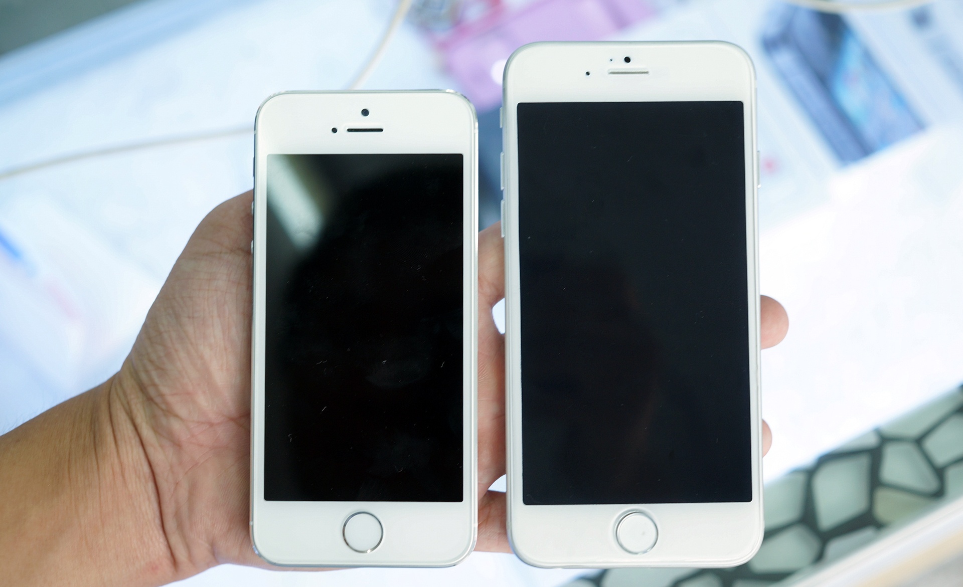 | Do có kích thước 4,7 inch, mô hình iPhone 6 trông lớn hơn khá nhiều so với iPhone 5S. |