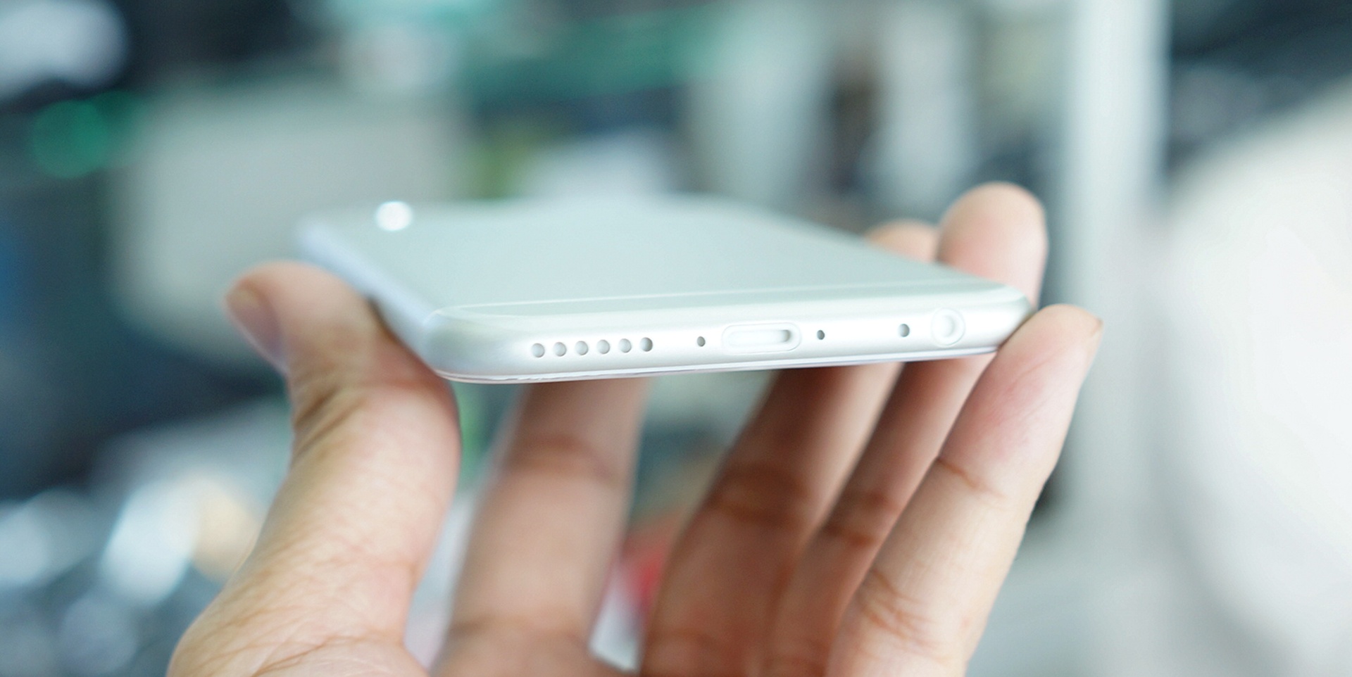 | Mô hình iPhone 6 không có phím nguồn ở cạnh trên cùng. |