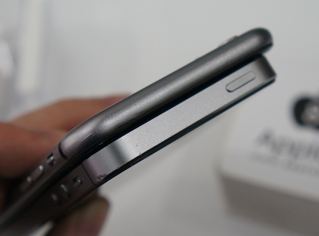 | Nút nguồn trên bản mô hình iPhone 6 cũng được chuyển sang cạnh phải. Trên iPhone 5S, nút nguồn này nằm ở đỉnh đầu. |