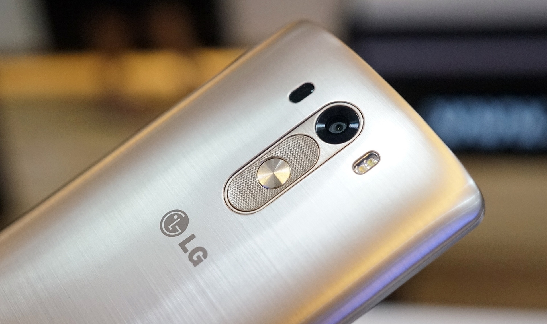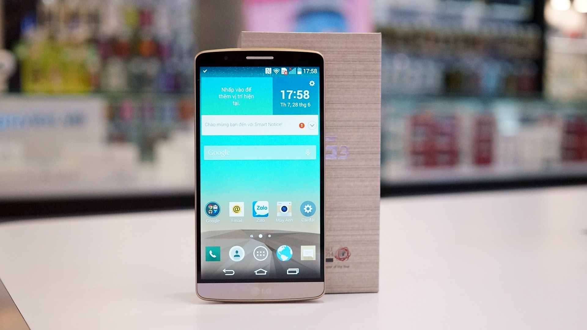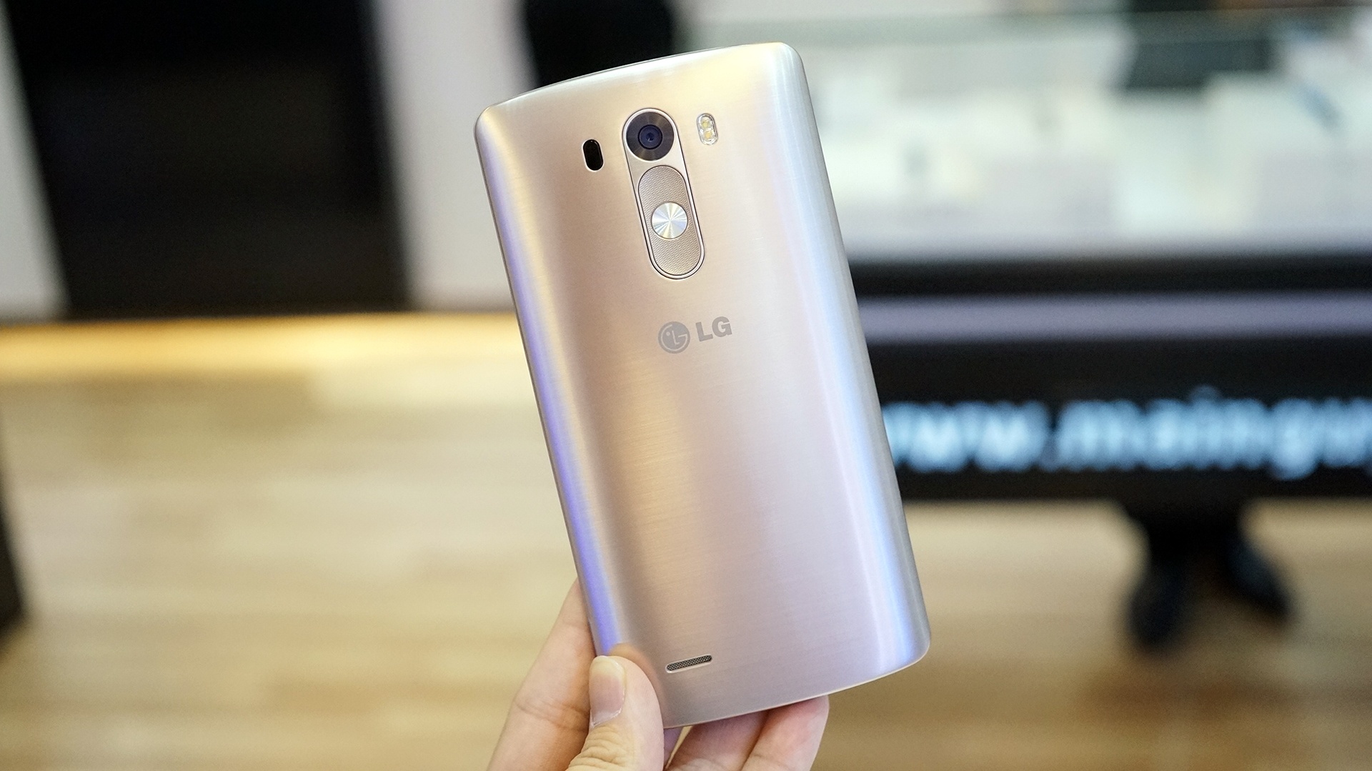 | Chiếc LG G3 trong ảnh là phiên bản Gold với mặt lưng màu vàng champagne tương tự như iPhone 5S Gold. |