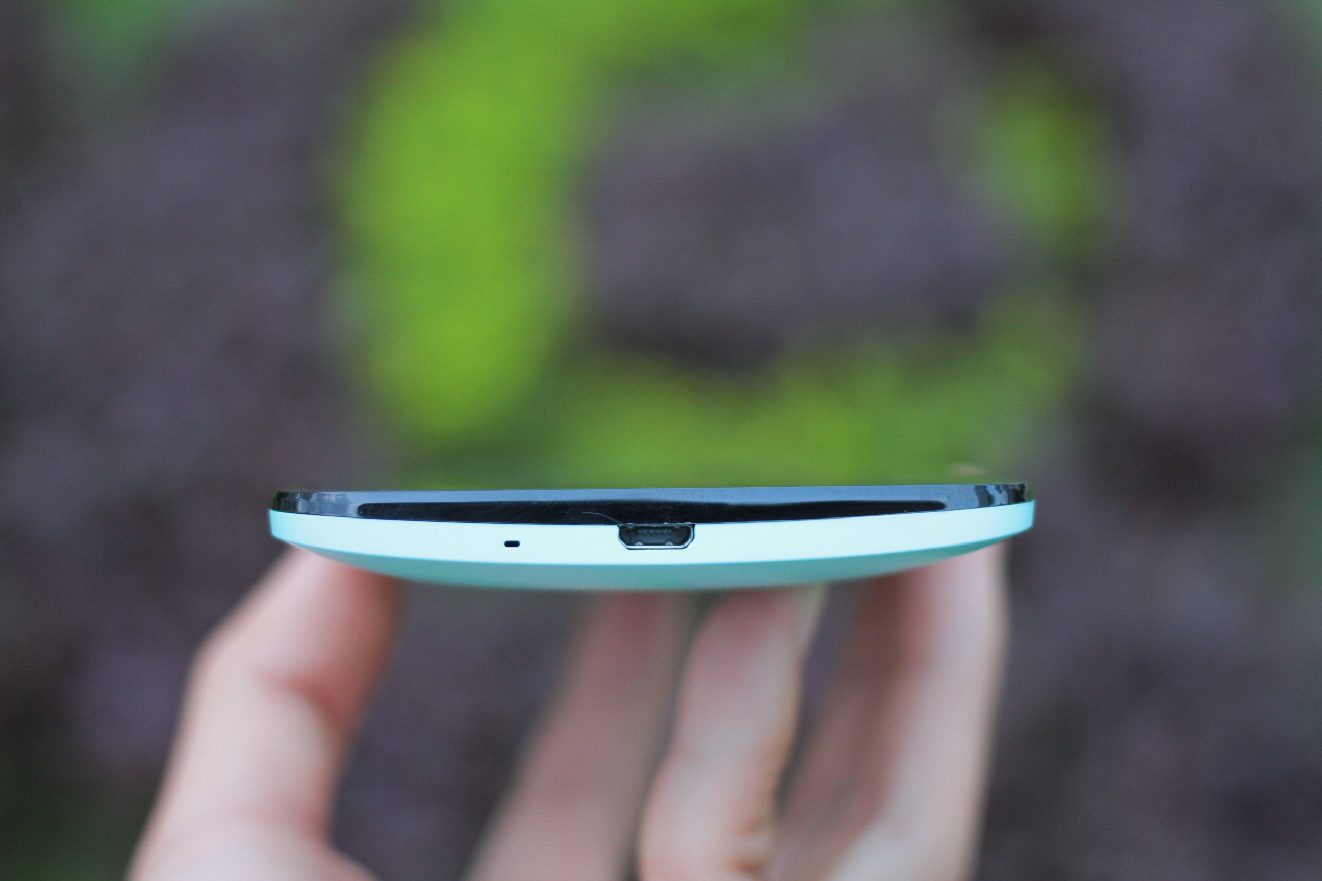 | Cổng microUSB và loa thoại ở cạnh dưới. |