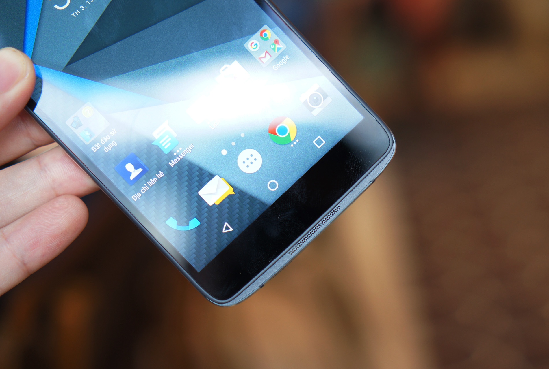 | Phần màn hình của máy hơi lồi lên so với khung viền, bên dưới là loa ngoài. Đây là cách thiết kế khá đặc biệt, tạo điểm nhấn cho sản phẩm. Máy dùng màn hình LCD nhưng khá nịnh mắt. Giao diện của DTEK50 giống chiếc Priv, được tùy biến nhẹ nhàng từ Android gốc. |