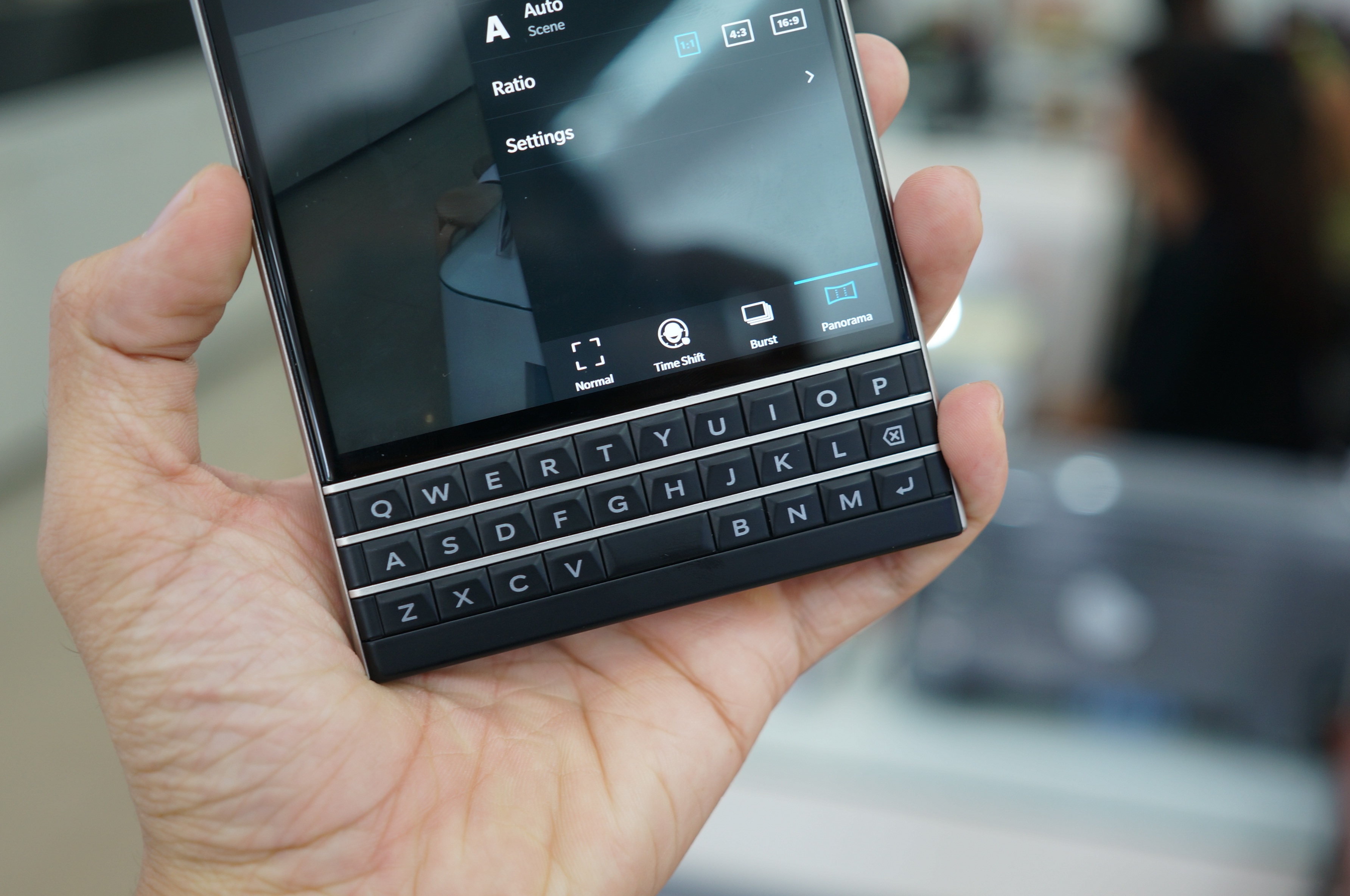 | BlackBerry đã trang bị cho Passport một bàn phím QWERTY ngay dưới màn hình vuông. Đây là bàn phím hybrid, có thể cảm ứng ngay trên bề mặt phím. |