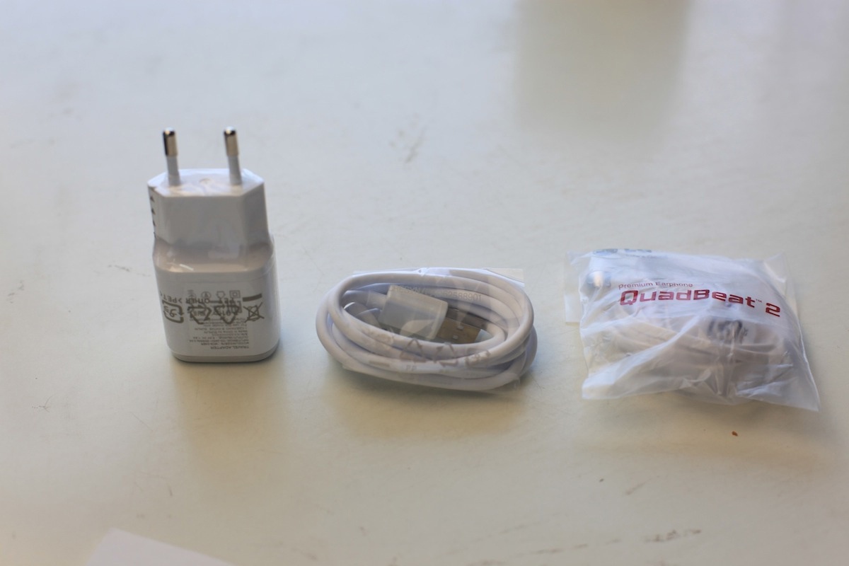 Phụ kiện đi kèm theo máy gồm có sạc, cáp kết nối và tai nghe.