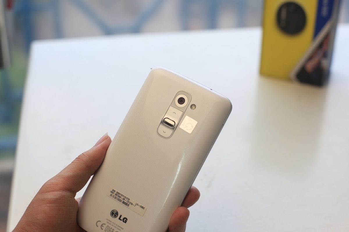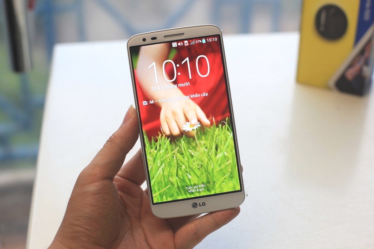 LG G2 dùng màn hình 5,2 inch Full HD, chip xử lý Snapdragon 800 tốc độ 2,3 GHz và camera sau 13 megapixel.