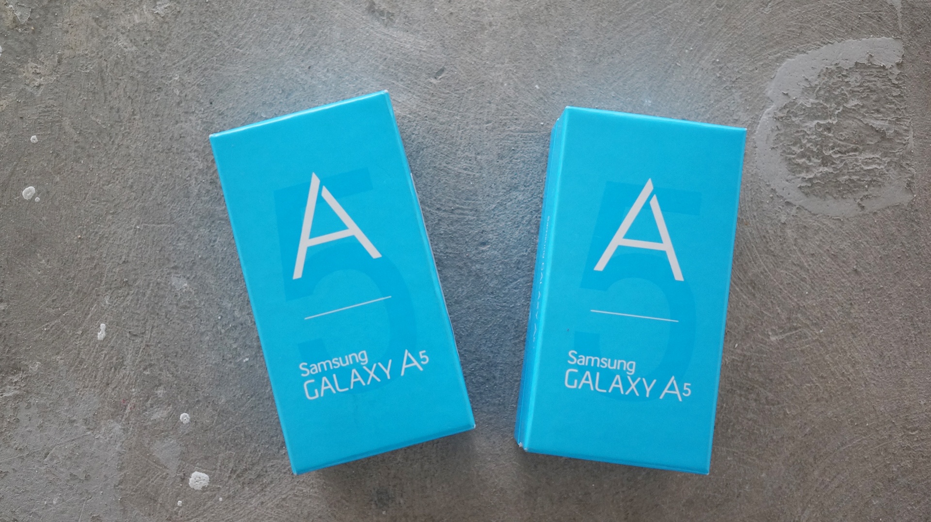 | Ngay sau sự kiện ra mắt đêm qua, Galaxy A5 đã được lên kệ tại Việt Nam với giá 8,9 triệu đồng. Khác với những chiếc Galaxy trước đây, A5 có hộp đựng màu xanh, có logo chữ A và số 5 cỡ lớn in mờ. |