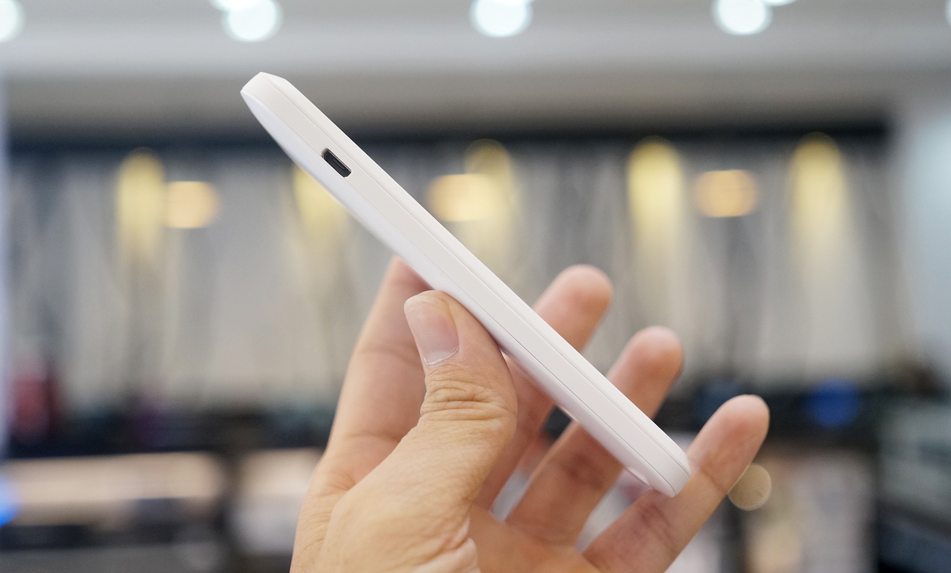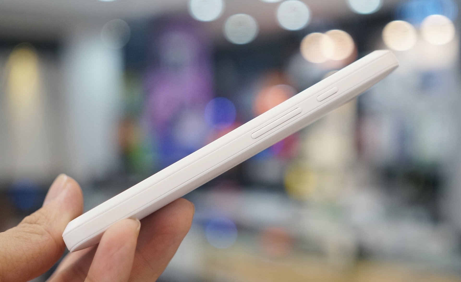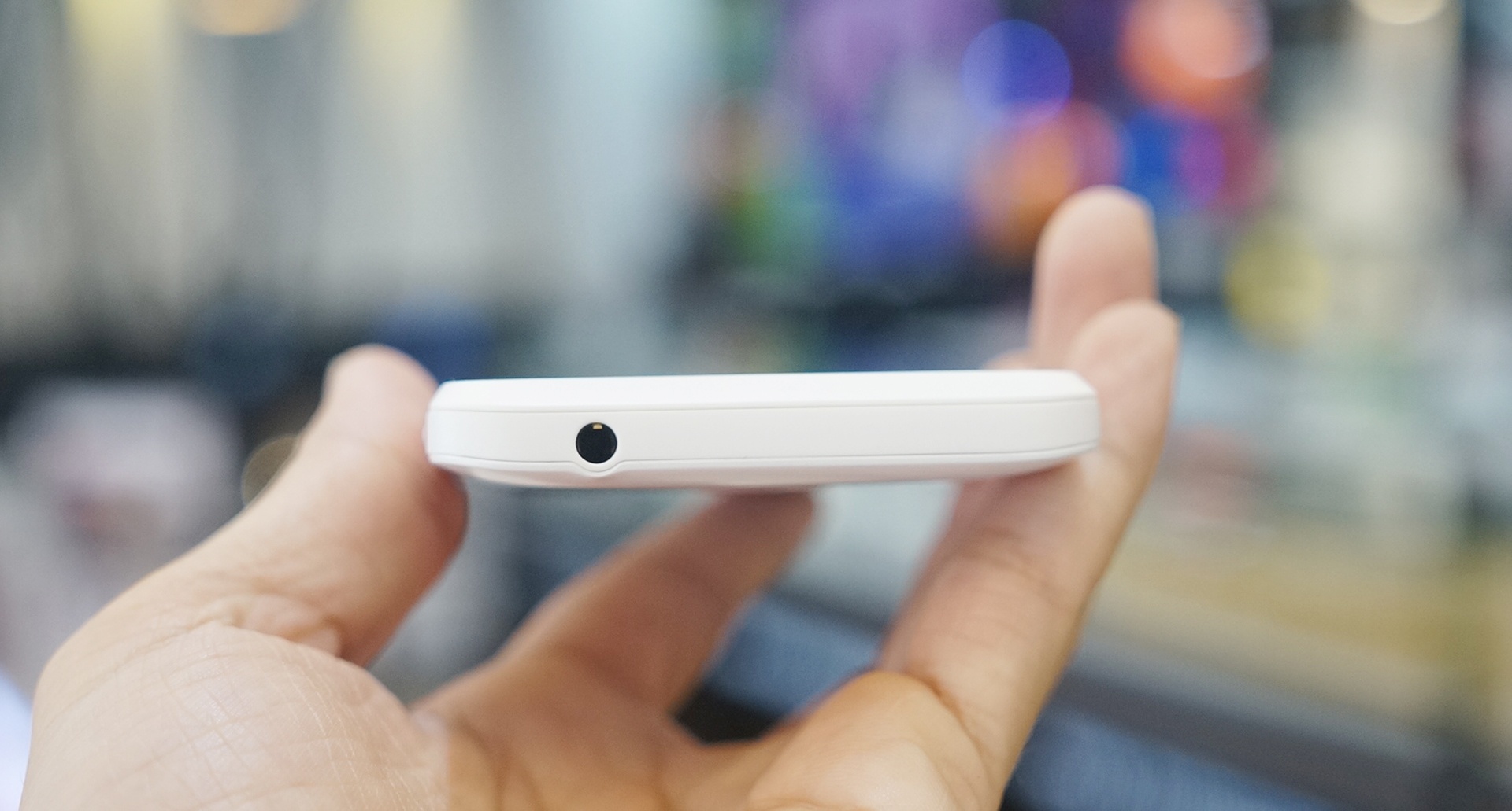 | Desire 210 có độ mỏng tương đối. Các phím cứng tiệp màu với thân máy. |