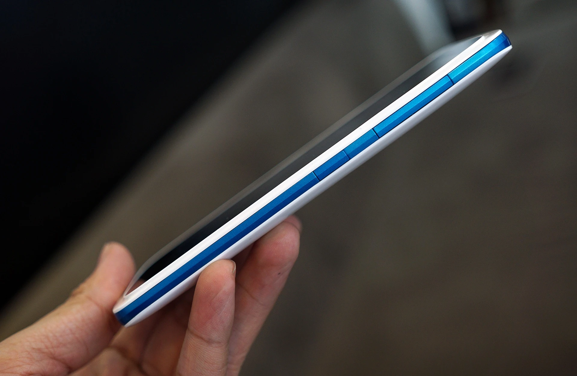 | Phần viền có lát cắt kim cương ở giữa thân máy, khiến thiết bị này trông góc cạnh hơn. |