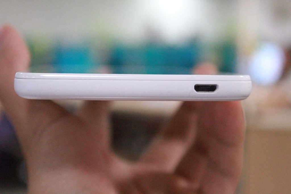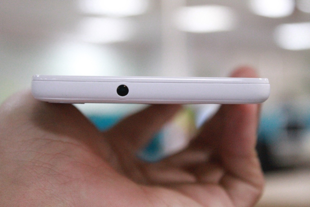 | Cạnh trên là jack tai nghe 3,5 mm. Máy được làm vuông đều, tạo cảm giác dày và khá thô khi nhìn. |