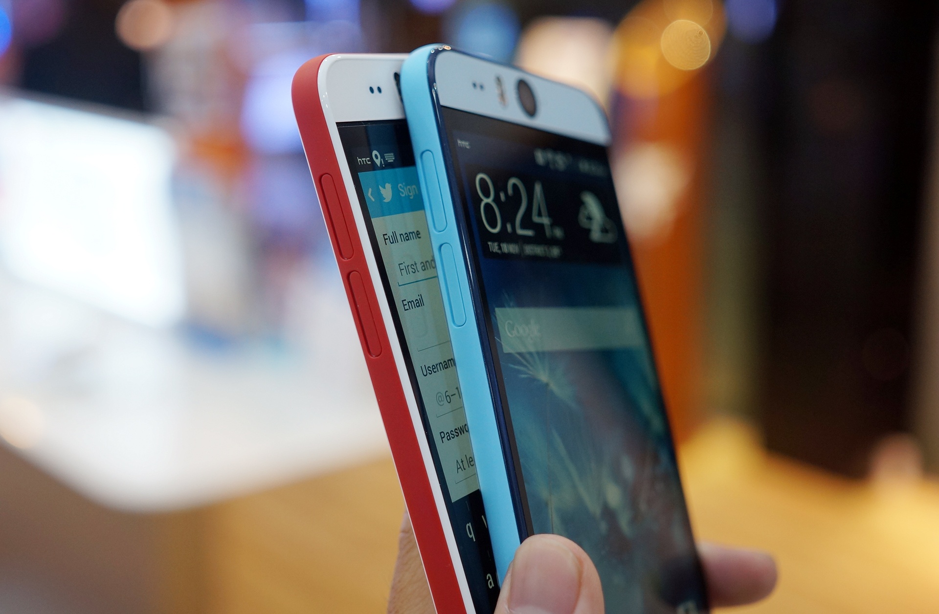 Chiếc smartphone chuyên chụp "tự sướng" của HTC đã lên kệ tại Việt Nam với ba màu xanh, cam và trắng. Giá bán của model này ở mức 12,5 triệu đồng.
