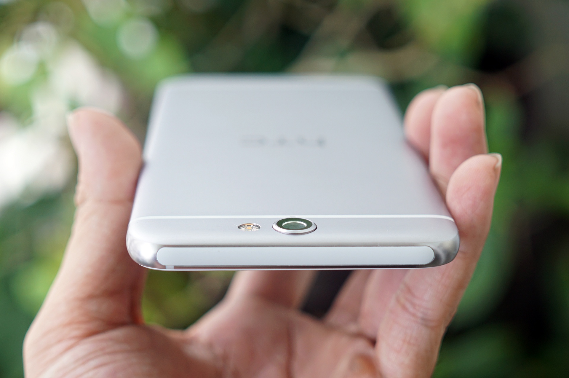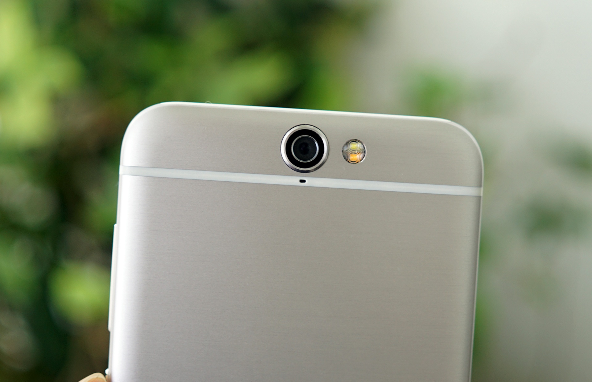 | Dải nhựa ở trên cùng giúp thiết bị bắt sóng tốt hơn. Từ góc độ này, camera của máy hơi lồi so với mặt lưng nhưng không đáng kể. |