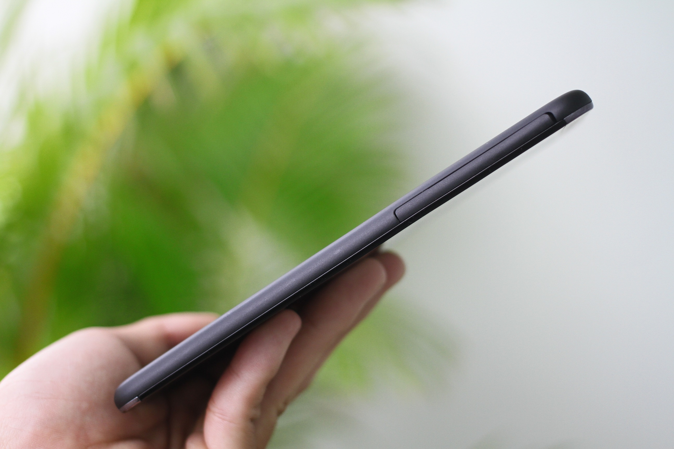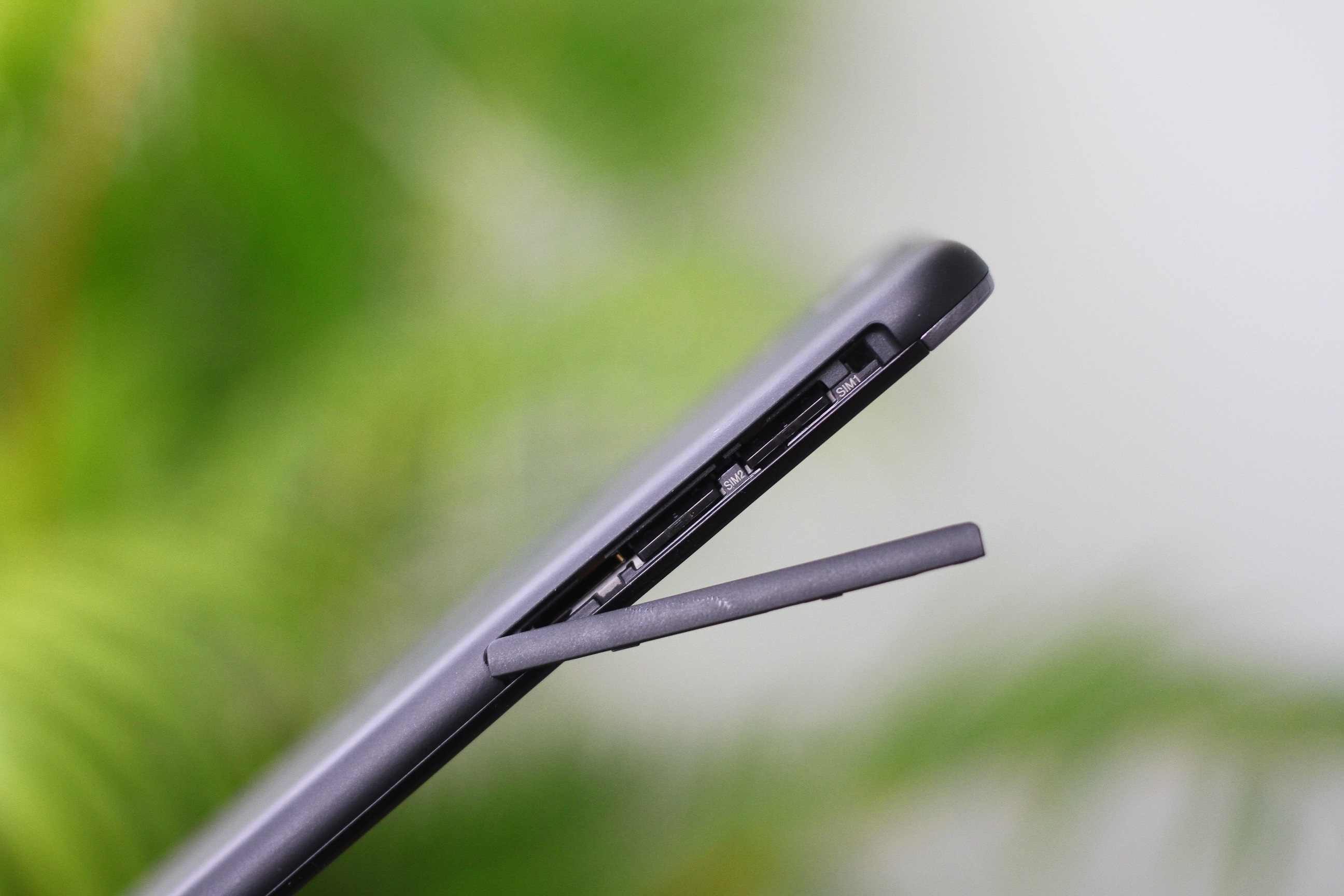 | Khe cắm SIM, thẻ nhớ khá dài ở bên cạnh trái. |