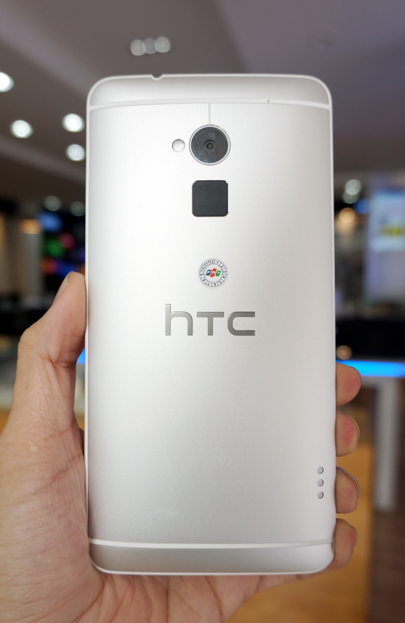 | HTC One Max có thiết kế tương tự như các smartphone dòng One nhưng có thêm cảm biến vân tay ở mặt sau. |