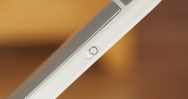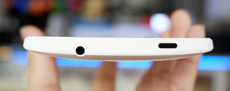 | Cạnh trái chỉ có một chốt kim loại để mở nắp lưng của máy. |