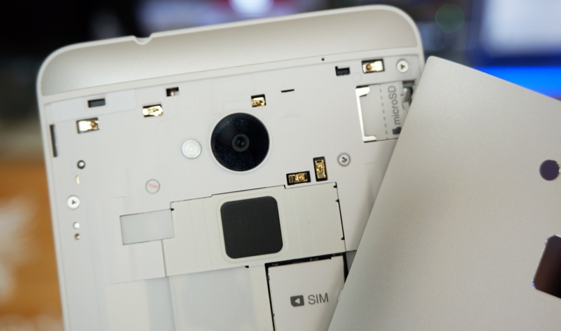 | Sau khi mở nắp lưng, người dùng có thể gắn SIM và thẻ nhớ. Vì có nắp lưng mỏng bằng kim loại và sử dụng chốt khóa nên mặt sau của HTC One Max rất dễ bị vênh nếu người dùng thao tác không cẩn thận. |