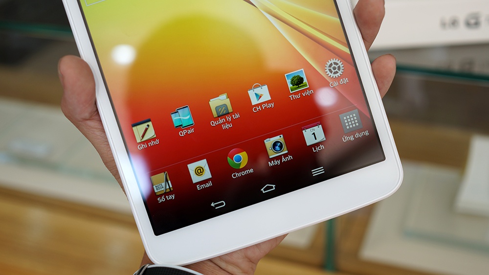 | Màn hình IPS 8,3 inch của G Tablet có độ phân giải lên đến 1.920 x 1.200 pixel, mật độ điểm ảnh 273 ppi. Máy cho khả năng hiển thị màu sắc khá tốt, tông màu có có xu hướng hơi rực tỡ. |