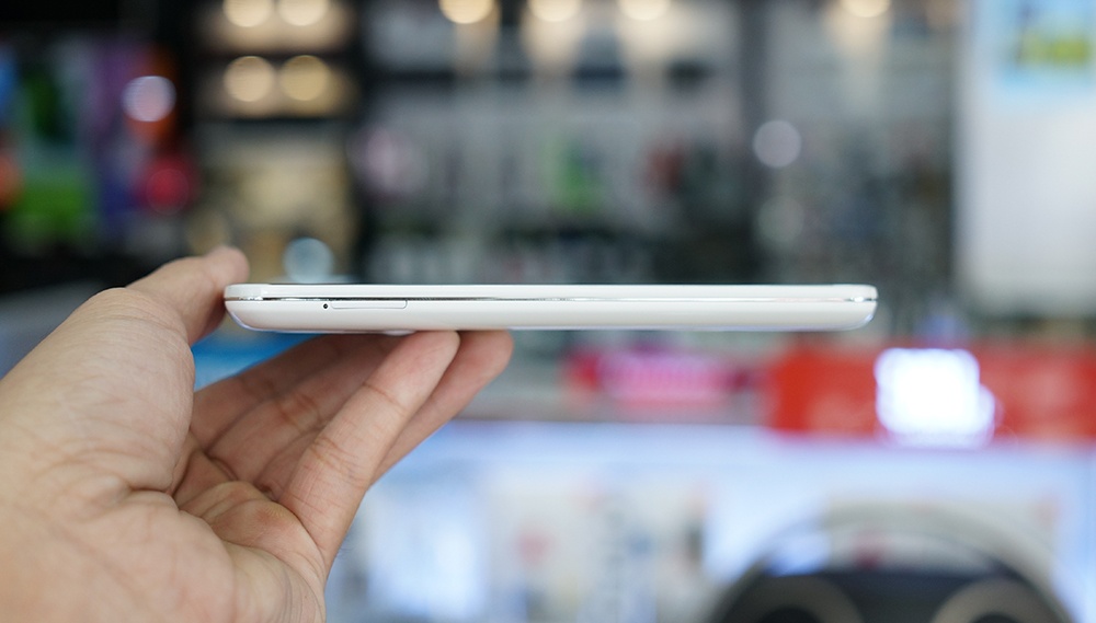 | Máy mỏng khoảng 8,9 mm, nặng 143 gram. Khe SIM được bố trí ở cạnh bên. |