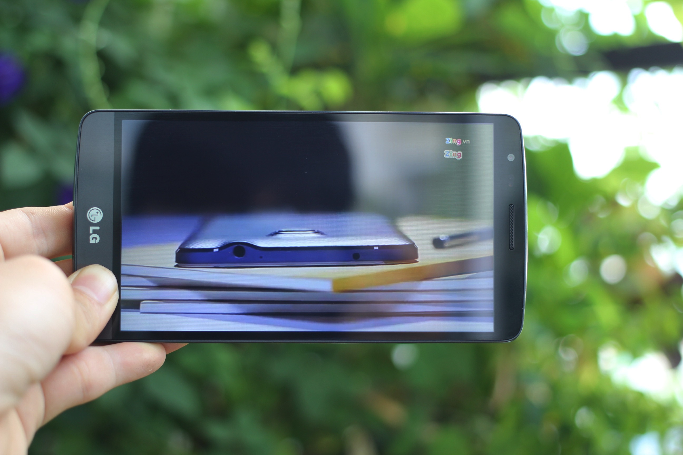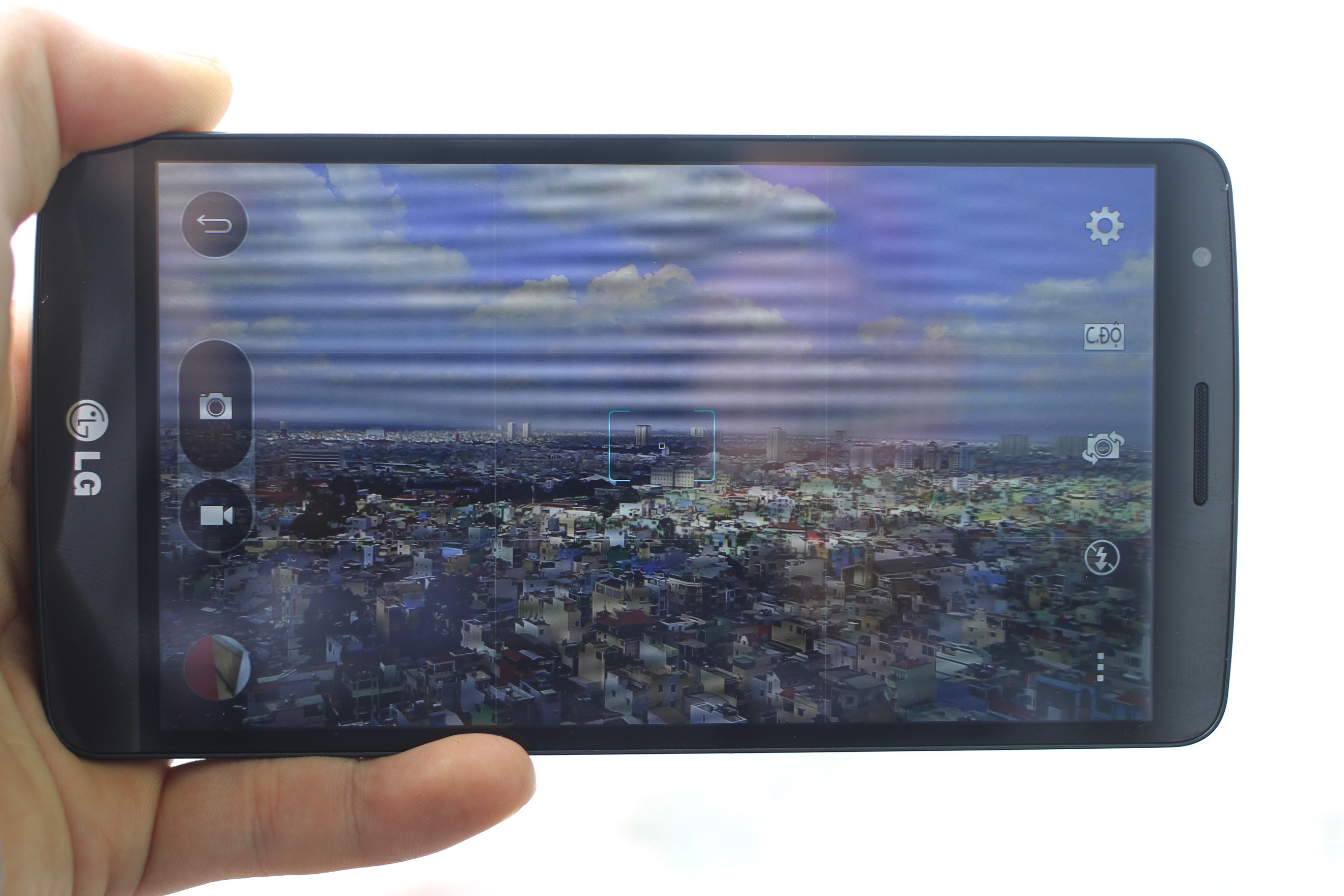 | Toàn bộ các phím cứng được dồn về mặt lưng, phía trên là cụm camera 13 megapixel kèm đèn flash. Đây là thiết kế đặc trưng được LG phát triển từ khi ra mắt G2 năm ngoái. |
