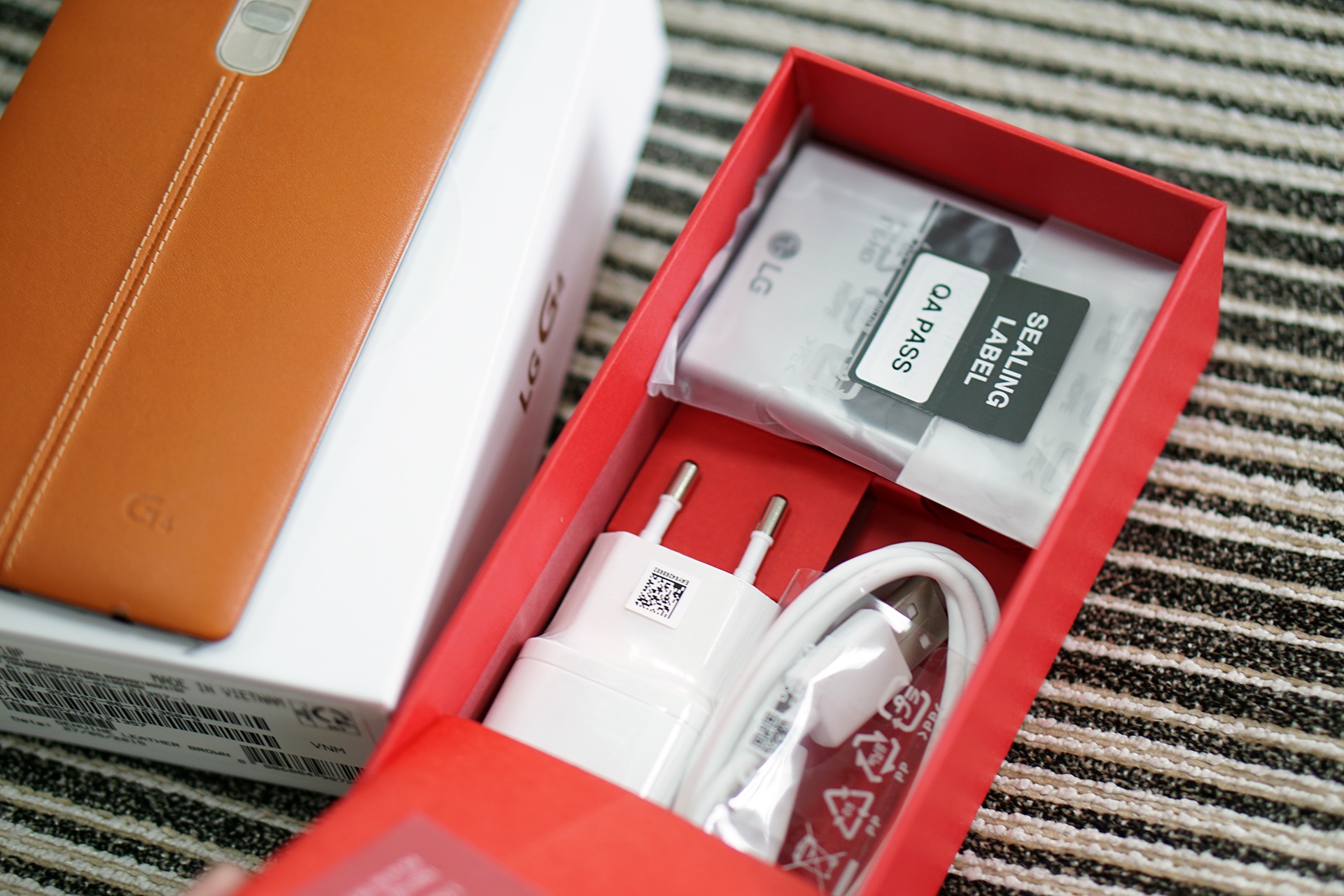 | Đây là bộ bán hàng chuẩn của LG G4 phiên bản mặt lưng da. |