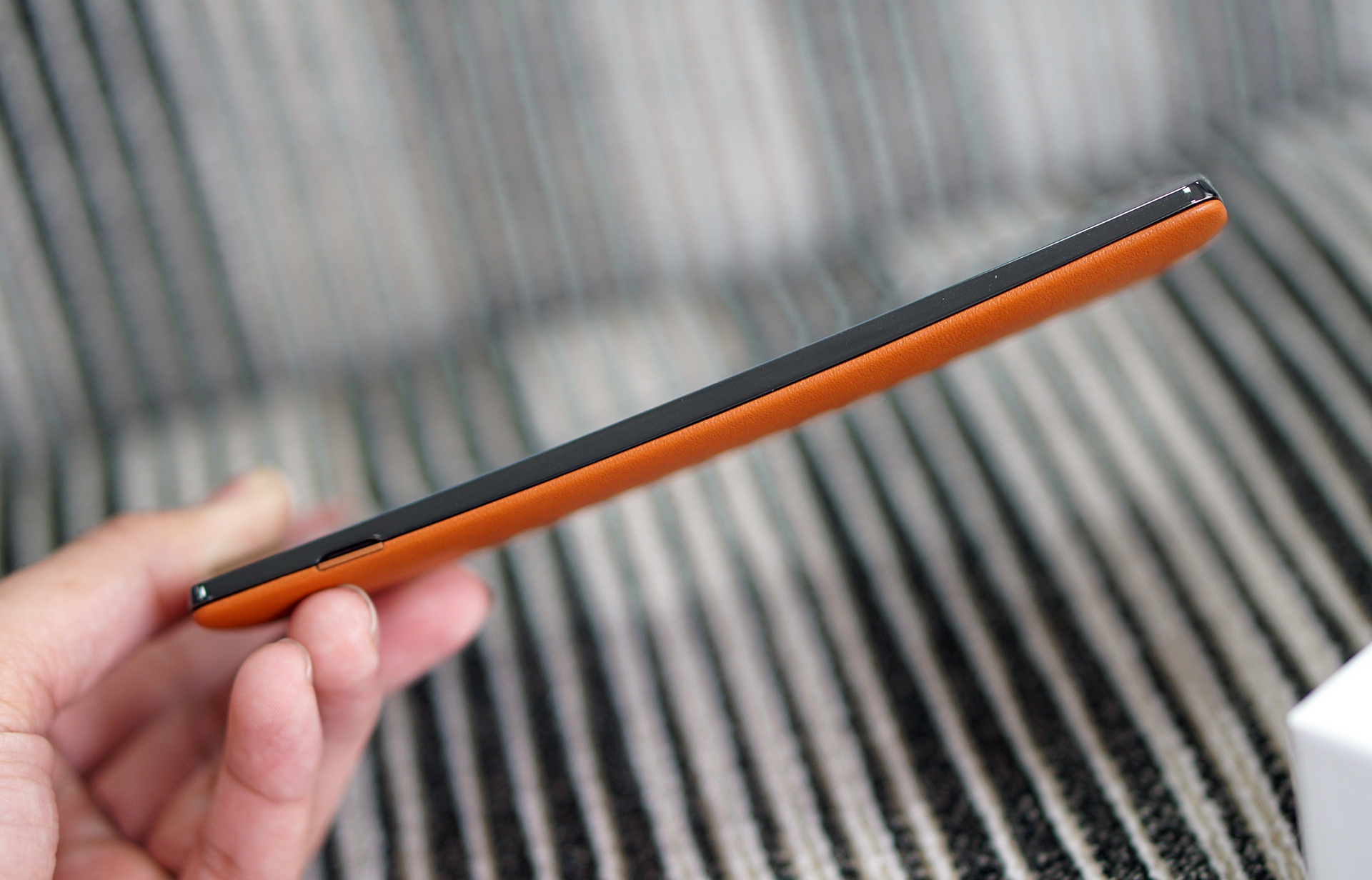 | Nắp lưng của LG G4 có thể tháo rời, mặt lưng cong và vát mỏng dần về hai cạnh. |