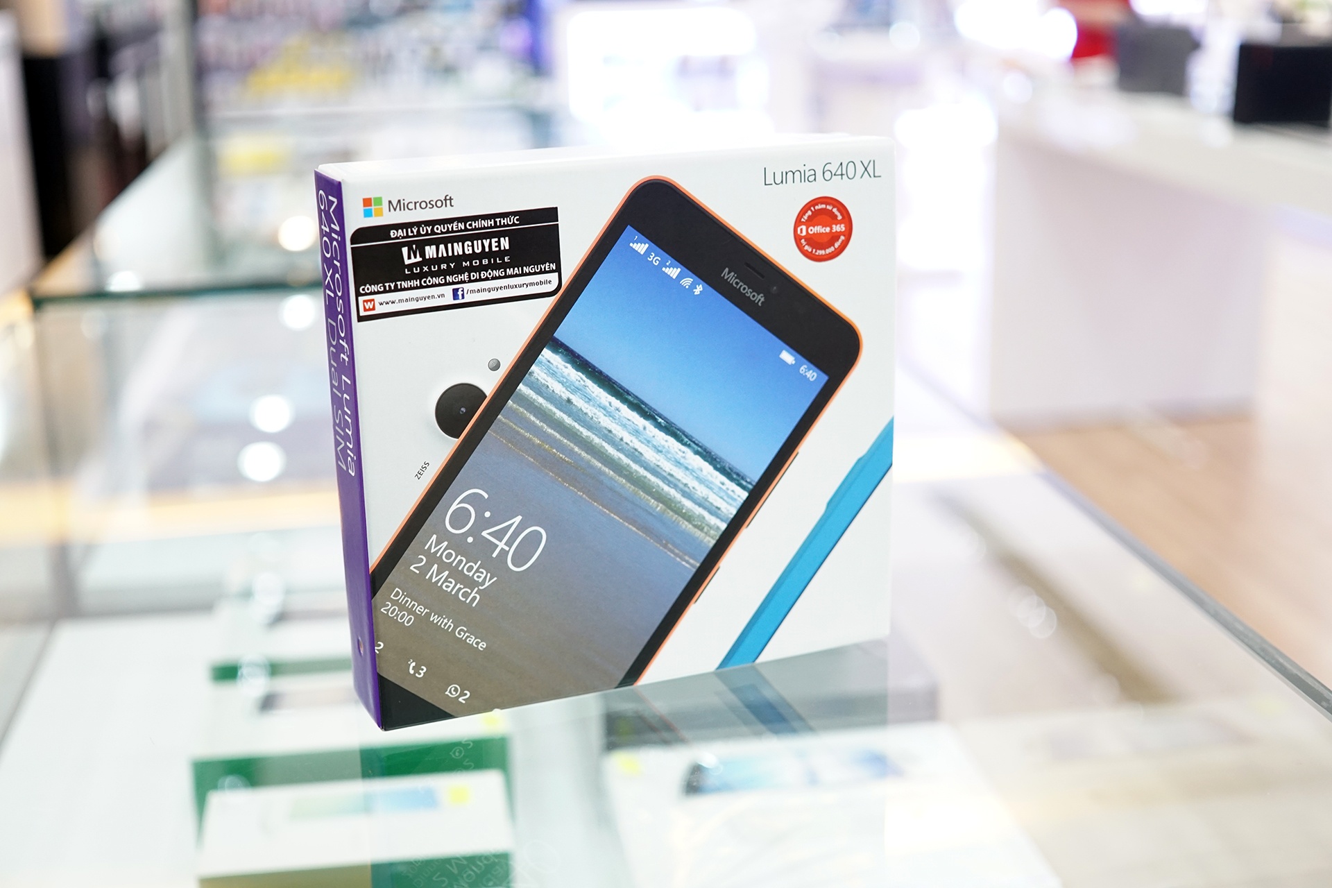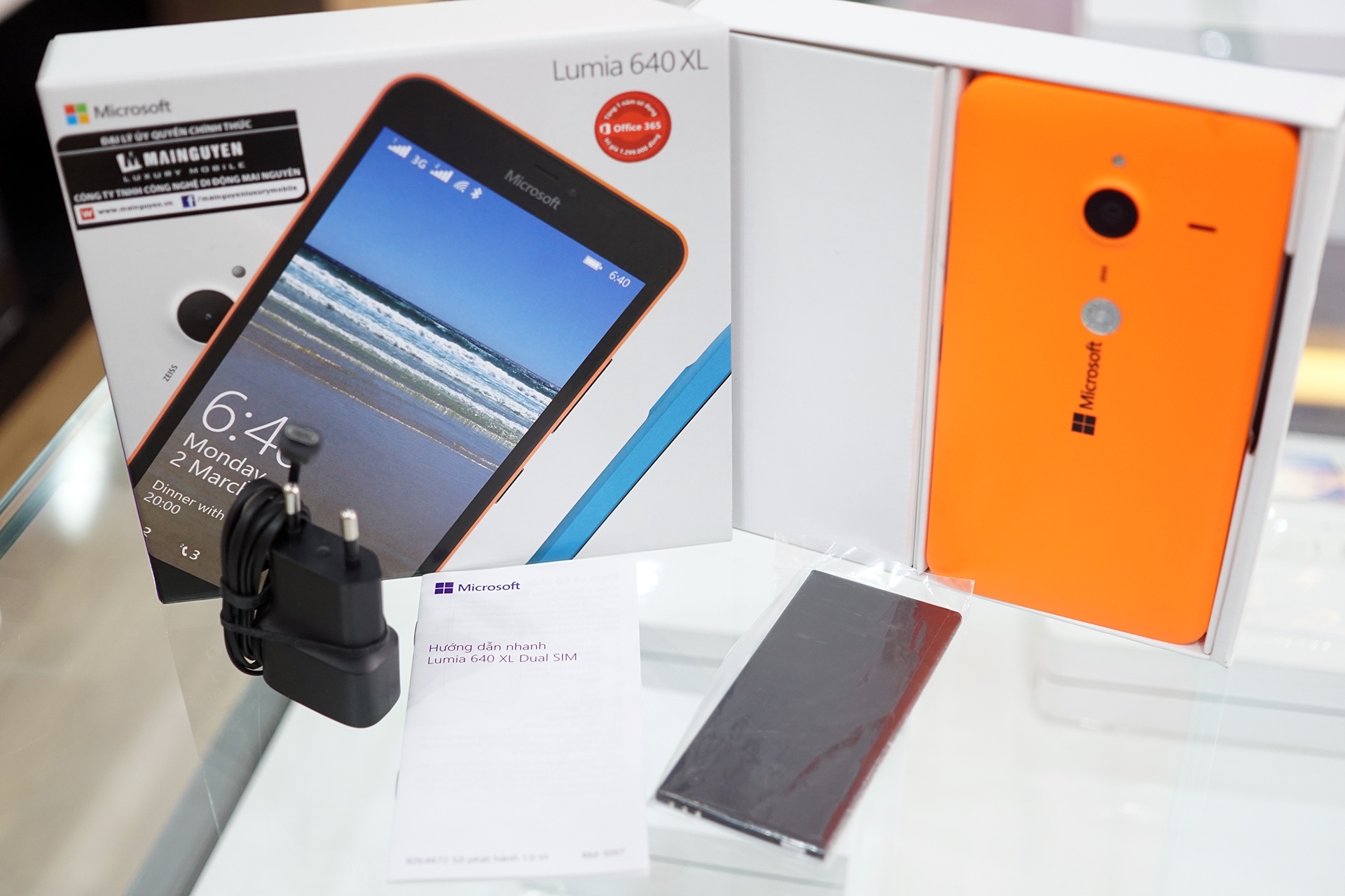 | Ngoài sản phẩm, người mua Lumia 640 XLcòn được tặng 1 năm dùng miễn phí bộ Office cho ba thiết bị: máy Lumia, tablet và máy tính cá nhân. Ngoài ra người dùng cũng được tặng 60 phút gọi Skype/tháng trong 12 tháng và 1 TB One Drive. |