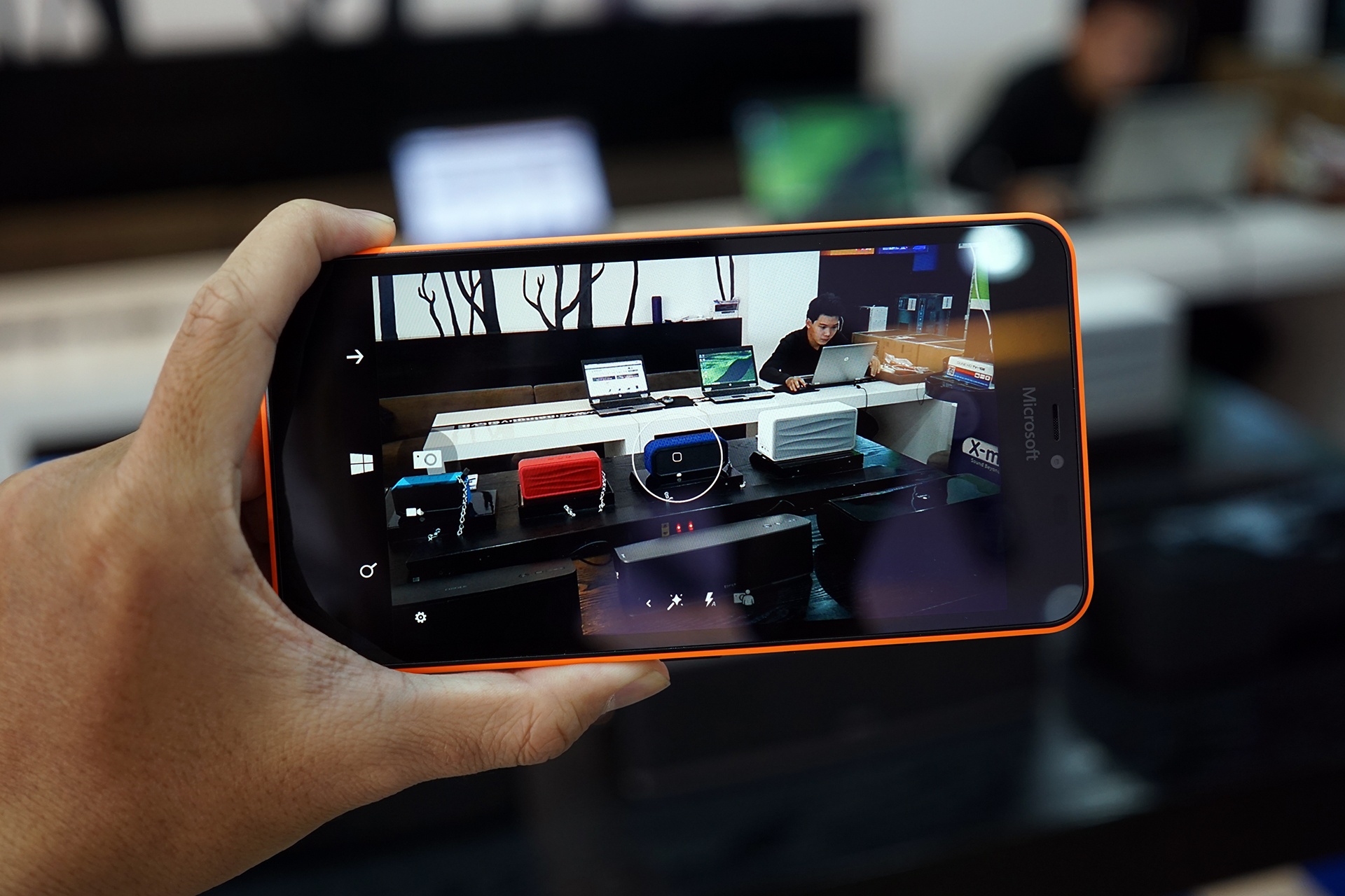 Microsoft mang đến cho chiếc phablet giá rẻ của mình nhiều trang bị cao cấp như camera 13 MP, ống kính Zeiss, màn hình có Glance báo giờ.