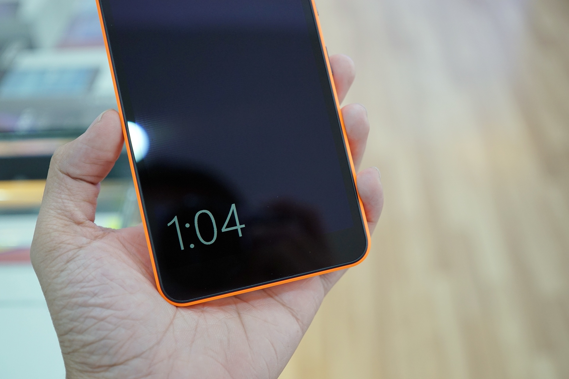| Điều đáng ngạc nhiên là Microsoft mang đến Lumia 640 XL màn hình có bộ nhớ hiển thị glance, giúp máy có thể hiển thị giờ ngay khi đang tắt màn hình. Trang bị này trước đây chỉ xuất hiện trên những model cao cấp. |