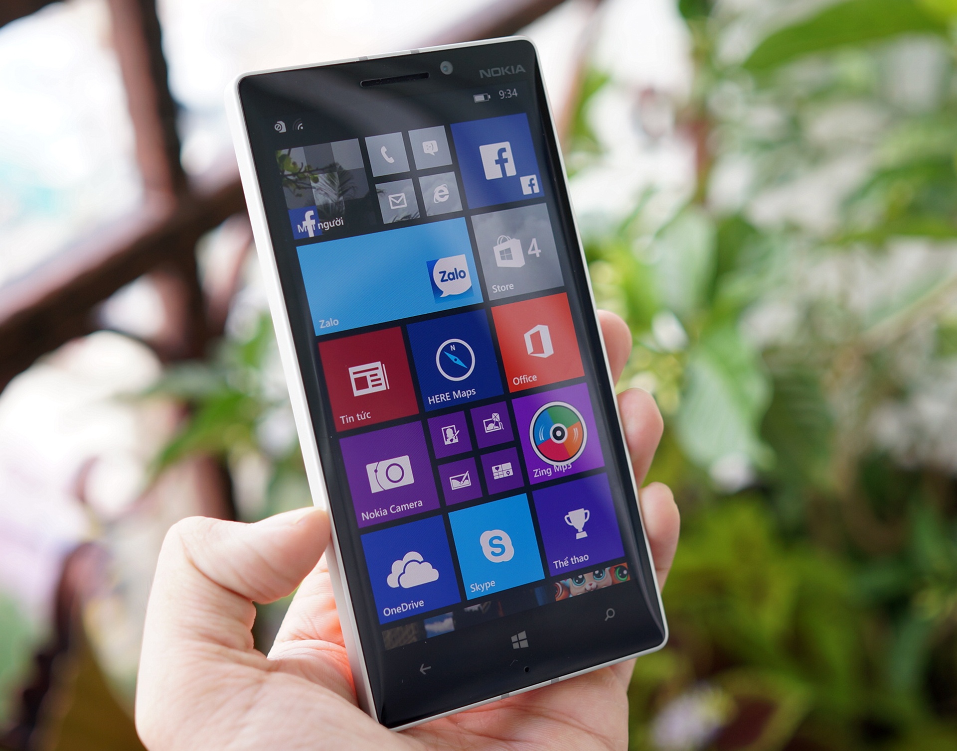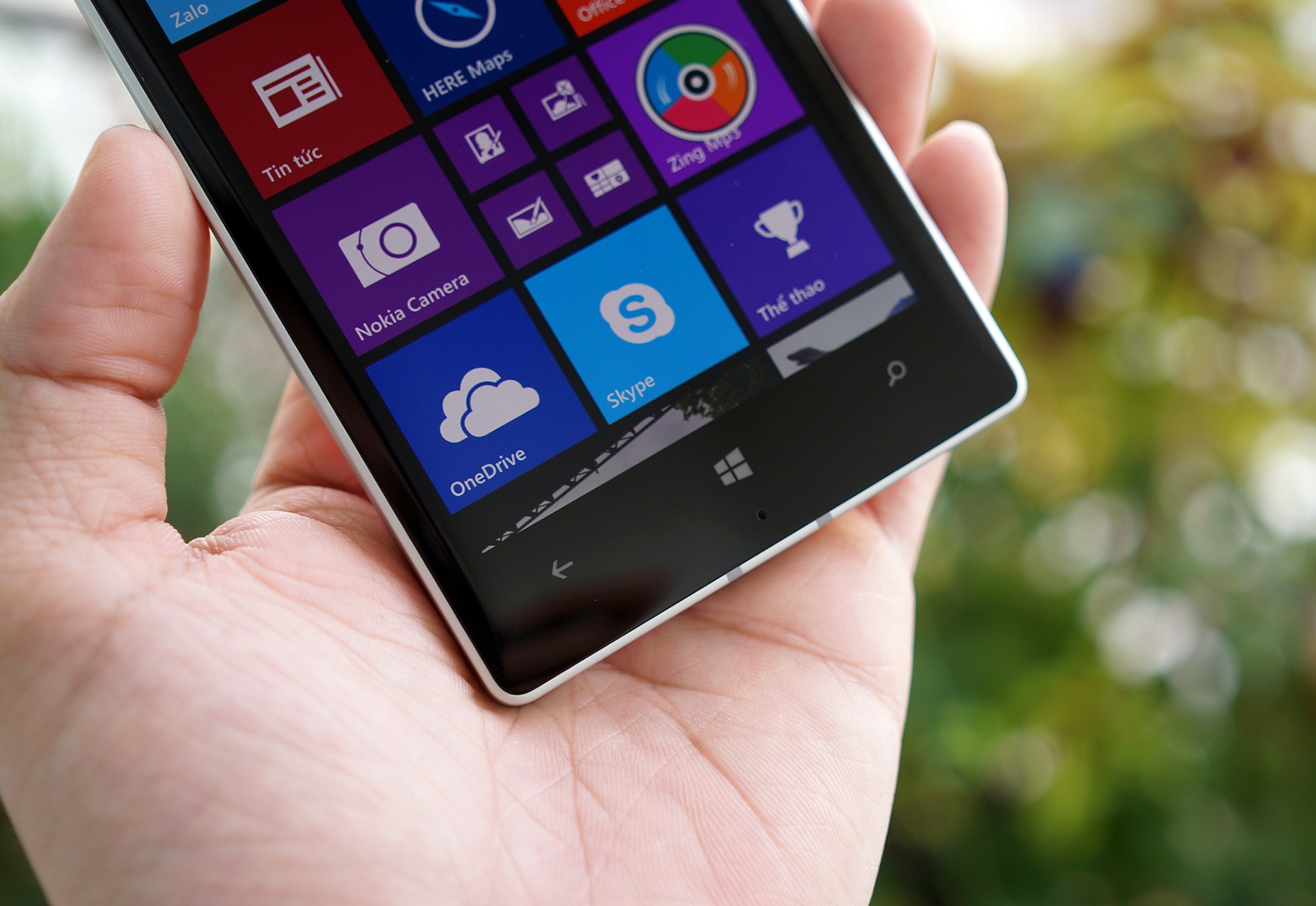 | Lumia 930 sử dụng hệ điều hành Windows Phone 8.1 với giao diện Live Tiles 6 cột. Cảm giác cầm trên tay khá vừa vặn. |