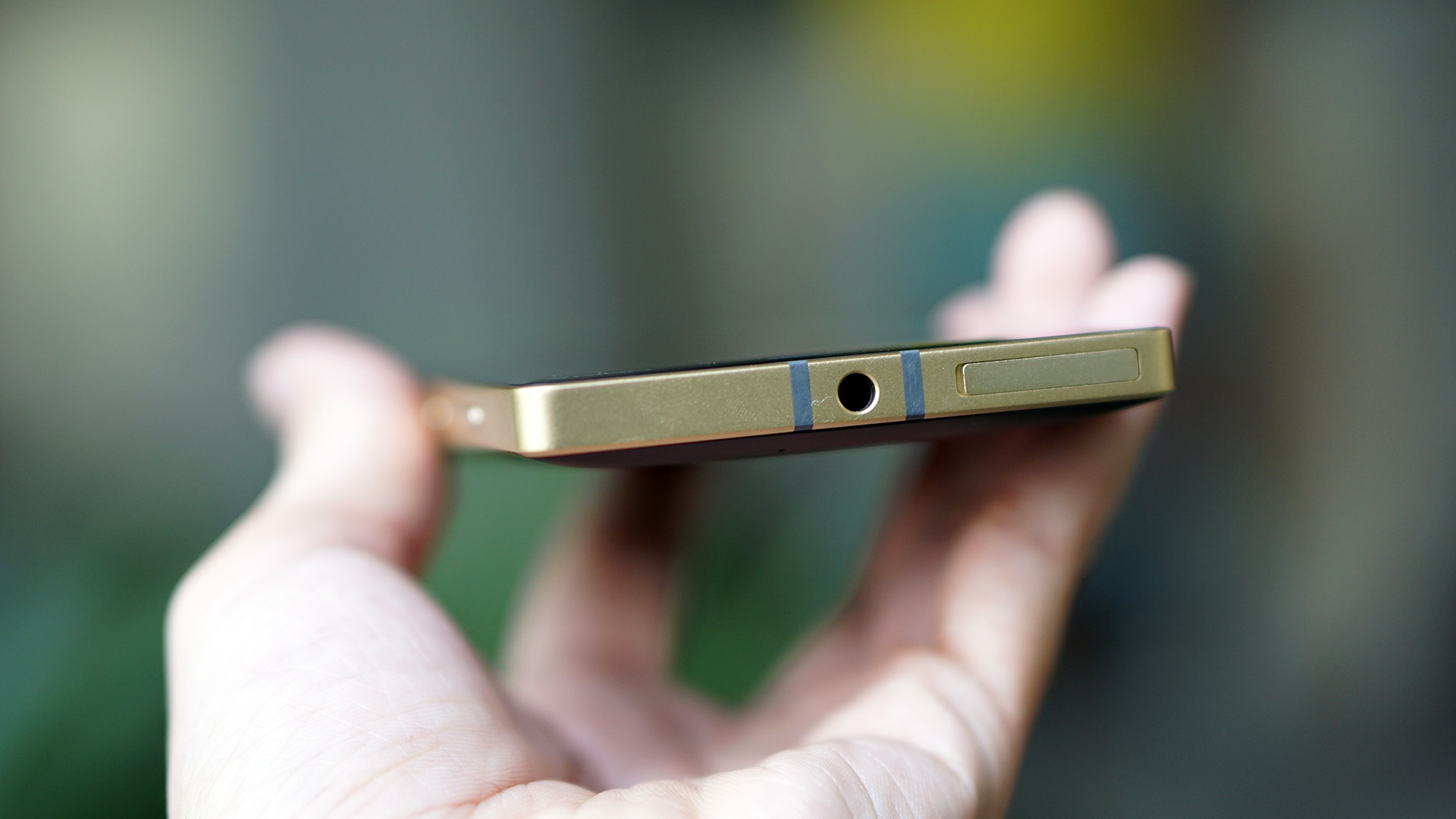 | Cổng kết nối và hai dải ăng ten thoại không bị phủ sơn vàng. |