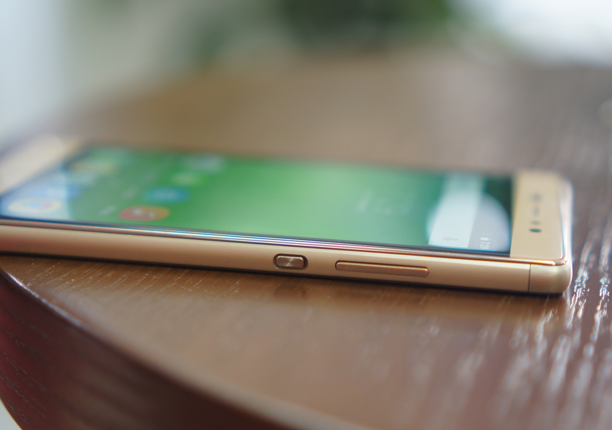 | Nút nguồn cách điệu và nút tăng, giảm âm lượng ở cạnh phải. |