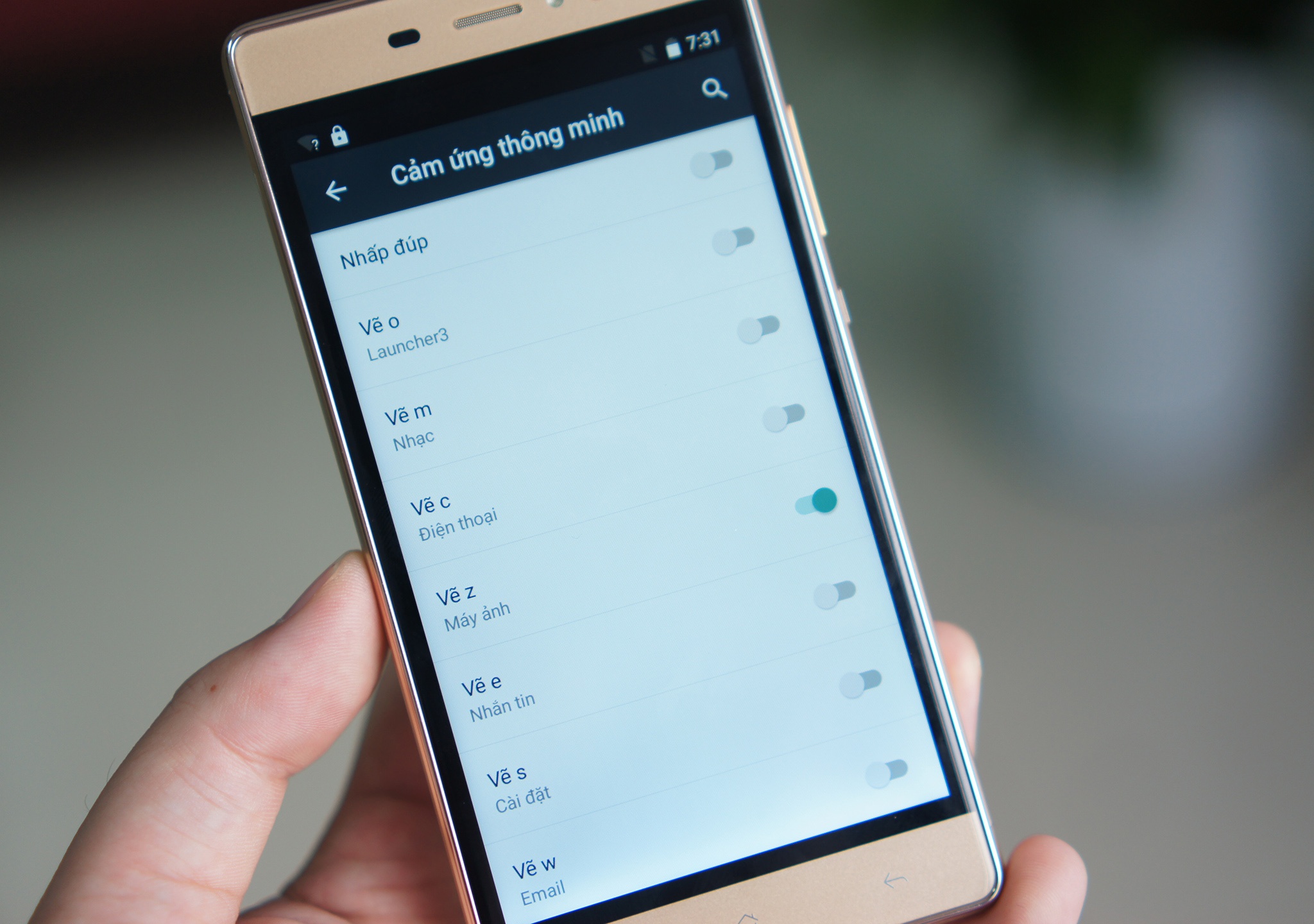 | Một trong những tính năng hay của Massgo Vi5 là cảm ứng thông minh, cho phép người dùng tuỳ chọn giao tiếp với máy bằng cử chỉ như nhấn đúp để mở khoá màn hình, vẽ chữ để mở các ứng dụng quen thuộc. Điều này giúp tiết kiệm tối đa thời gian mở máy, chạy ứng dụng. |