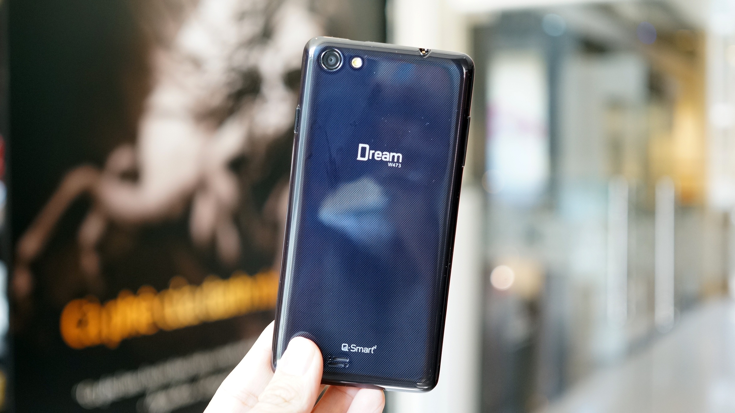 | Dream W473 có thân hình khá "mảnh mai", cho cảm giác rất nhẹ và gọn khi cầm trên tay, khác hẳn so với những chiếc Lumia của Microsoft và Nokia trước đây. Tuy nhiên, mặt lưng của thiết bị này dễ bám vân tay. |