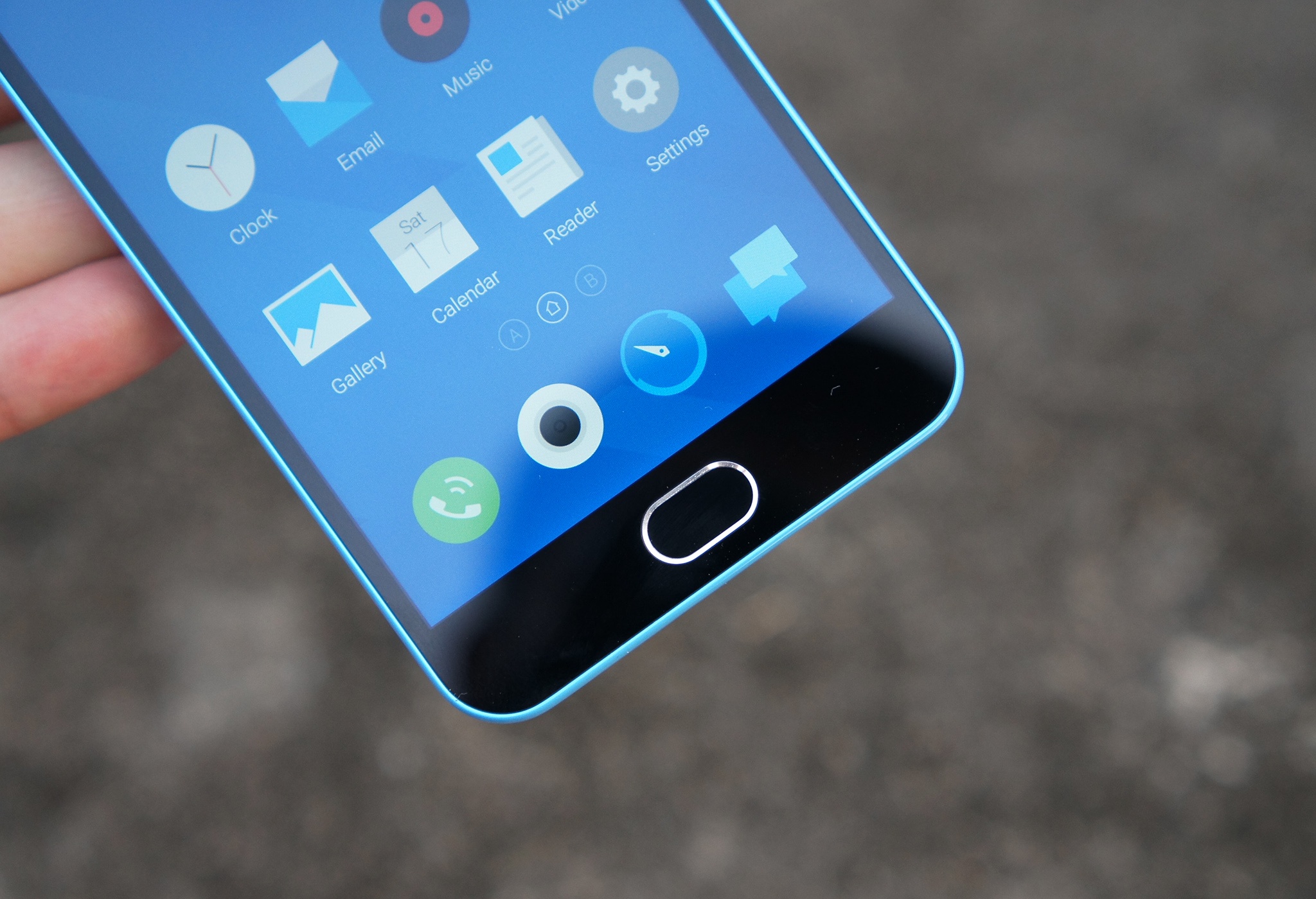 | Khác với các mẫu Android phổ thông hiện nay, Meizu M2 chỉ có duy nhất một phím điều hướng. Nhấn chạm vào phím này, máy sẽ thực hiện thao tác Back, nhấn sâu hơn sẽ là nút Home. |