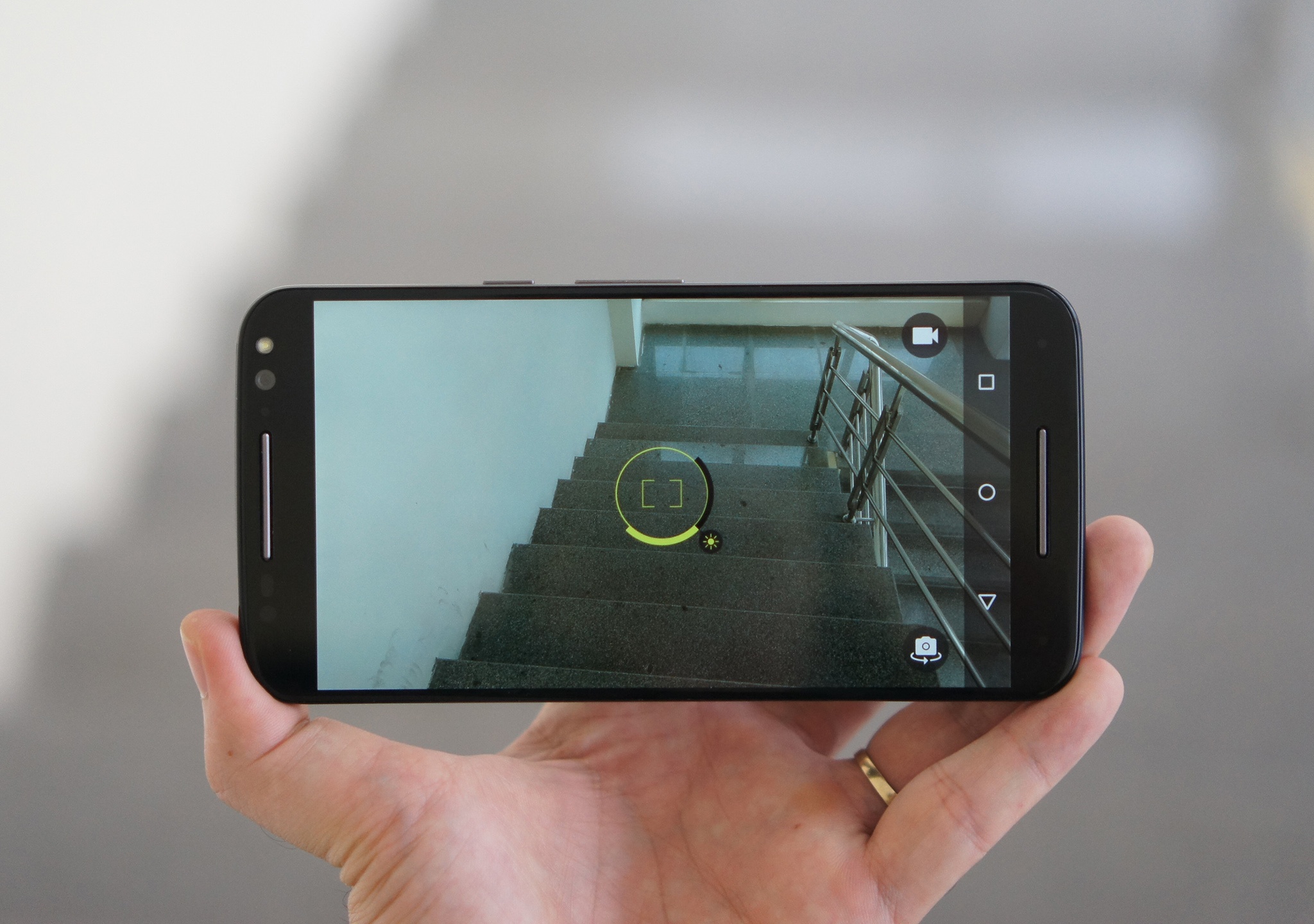 | Một chi tiết hơn khó chịu trên Moto X Style là cụm loa ngoài đặt hơi lồi ra ở các cạnh trên dưới. Các phím điều hướng ảo được đặt trong màn hình. |