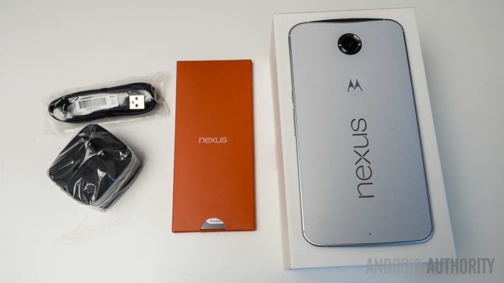 | Không lâu sau khi giới thiệu cùng Nexus 9, Nexus 6 đã chính thức lên kệ tại một vài thị trường lớn ở Âu Mỹ. Khác với Nexus 5, Nexus 6 có hộp rất đơn giản với toàn bộ là màu trắng và logo Nexus khắc chìm. Phụ kiện đi kèm chỉ gồm cục sạc và cáp. |