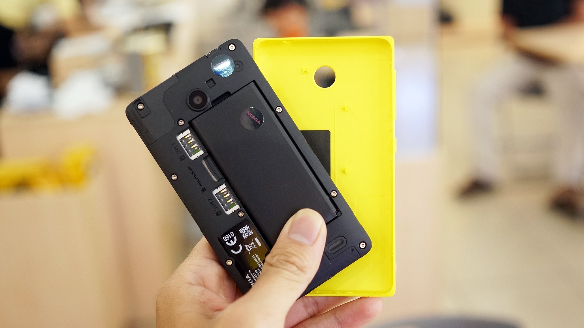| Mặt lưng có thể được tháo rời để lắp pin, 2 SIM và thẻ nhớ. |