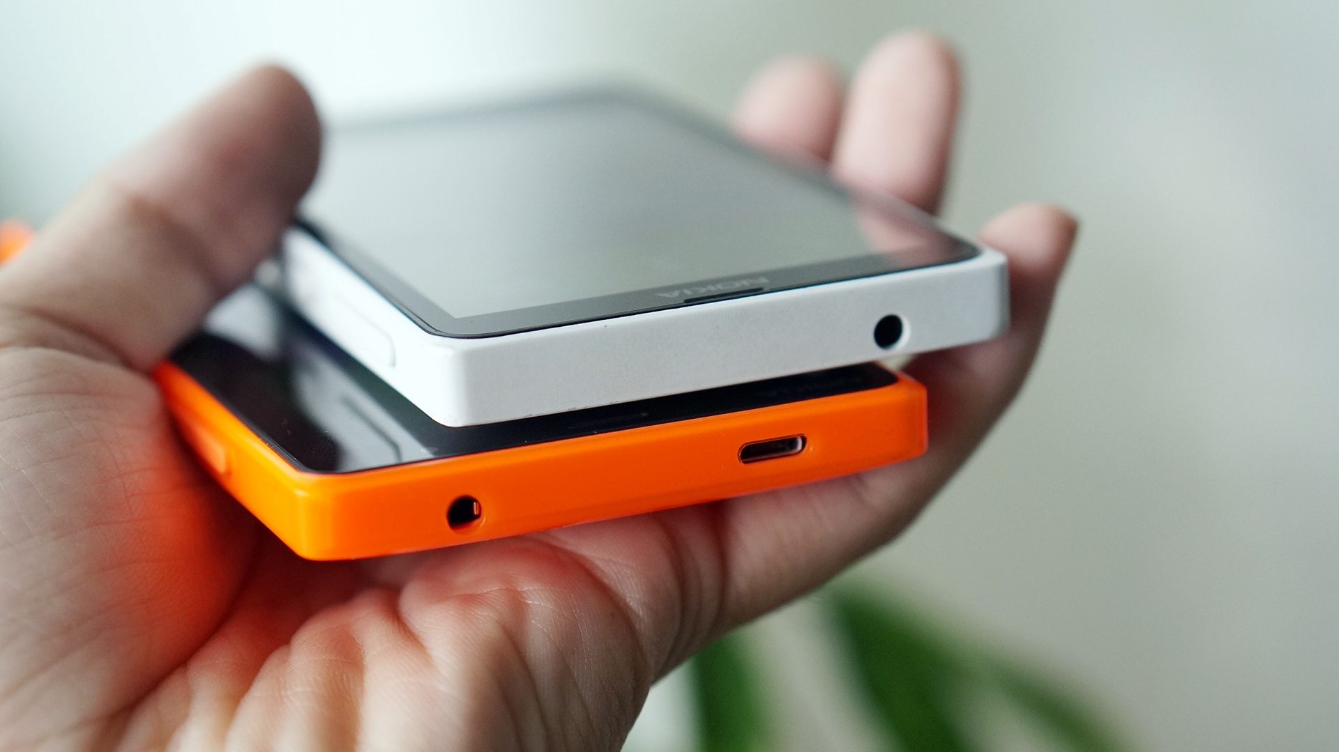 | Nokia X2 dày hơn 1 mm so với X, nhưng sự khác biệt này không rõ ràng khi so sánh bằng mắt thường. |