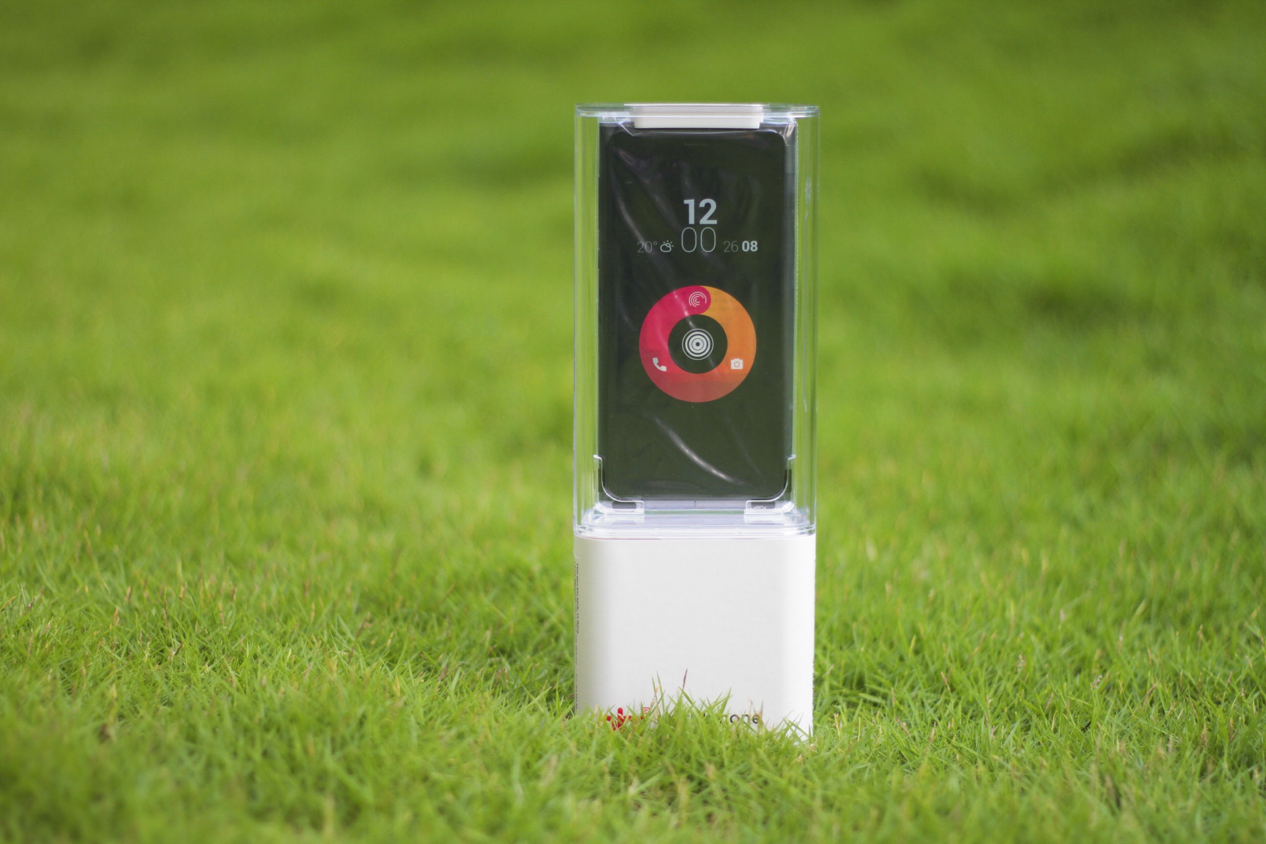 | SF1 có thiết kế khá lạ, giống cách đóng gói dòng iPod của Apple trước đây, nhưng lớn hơn. Các phụ kiện được đặt bên dưới, trong khi phần để máy bằng nhựa trong, có thể nhìn thấy được. |