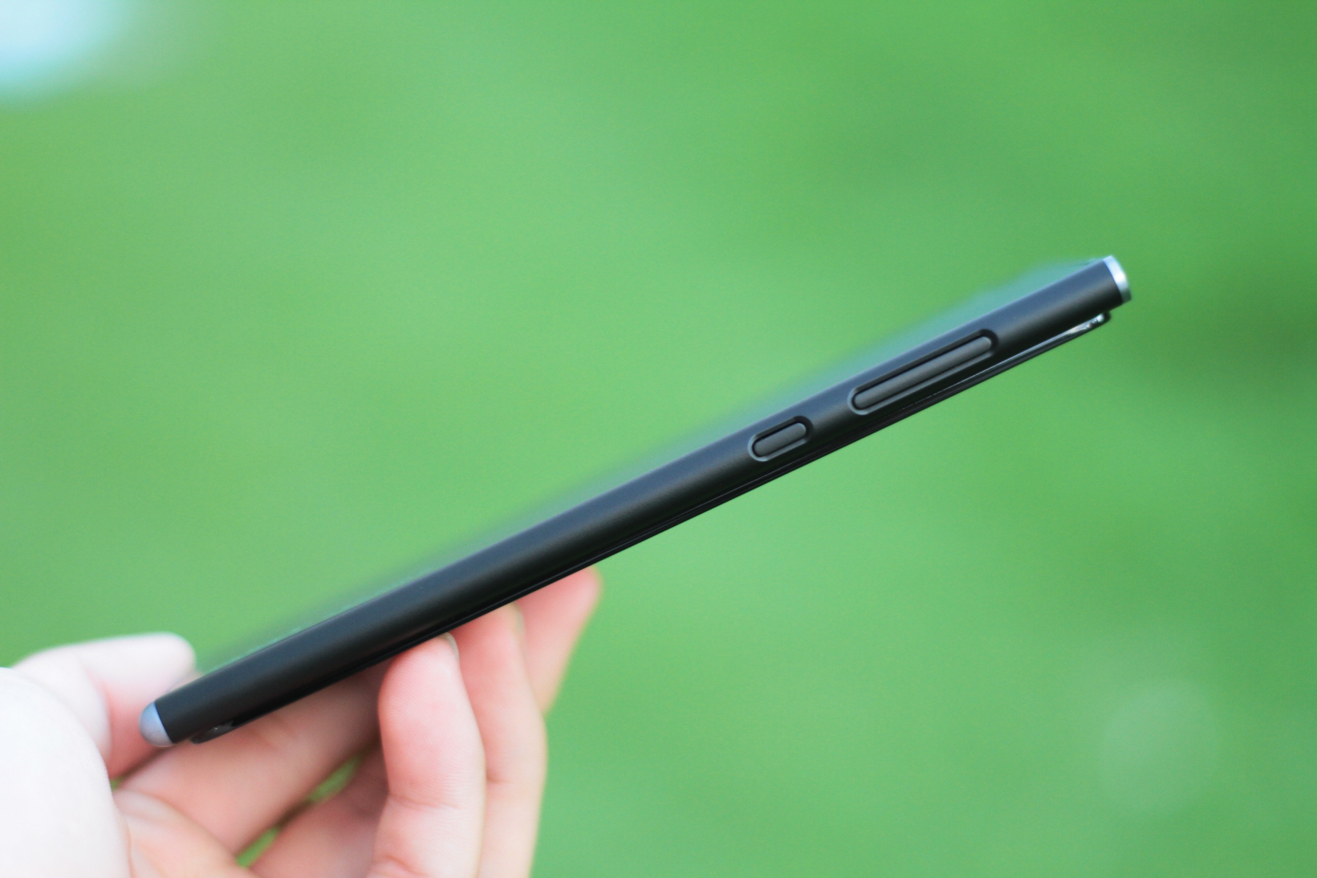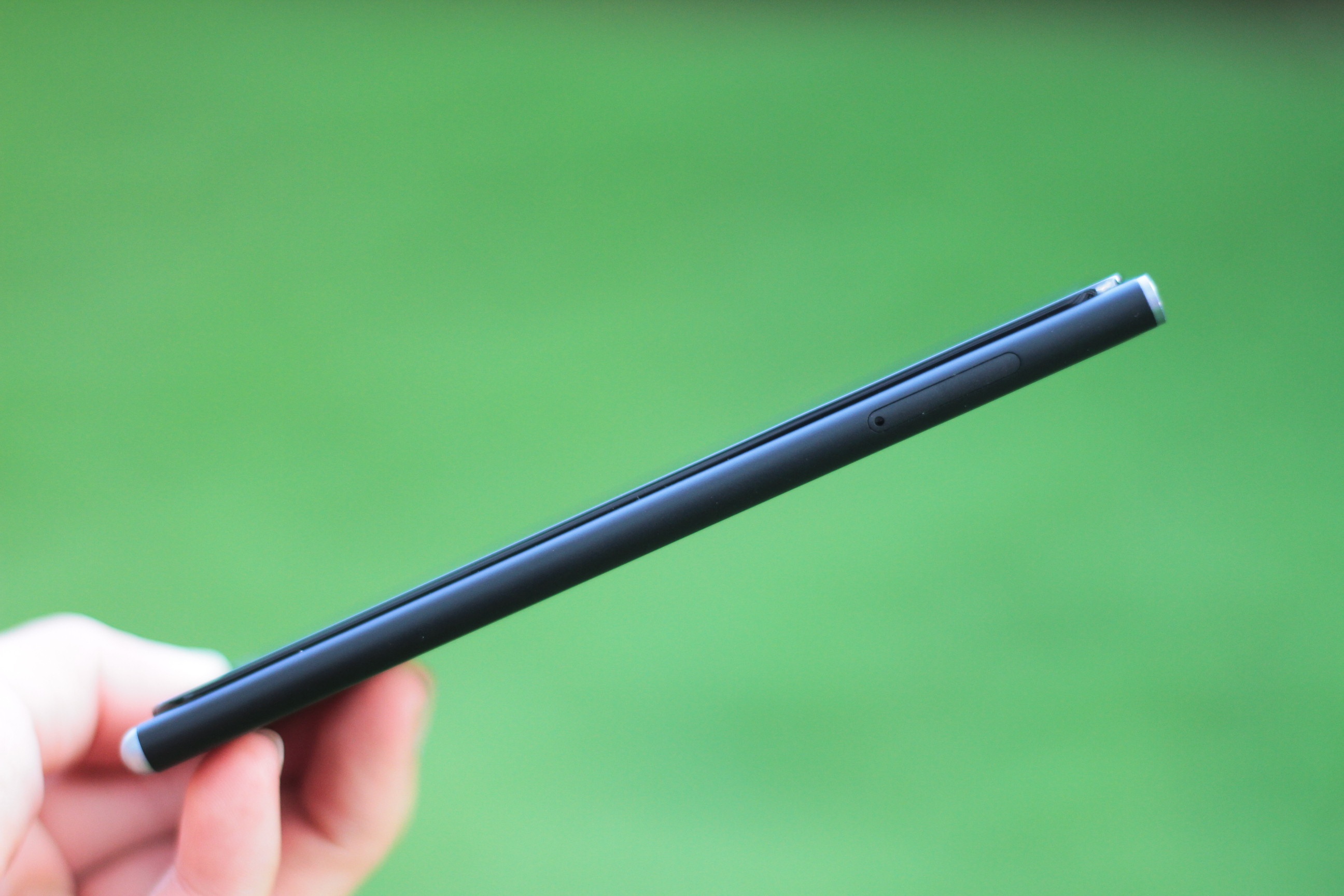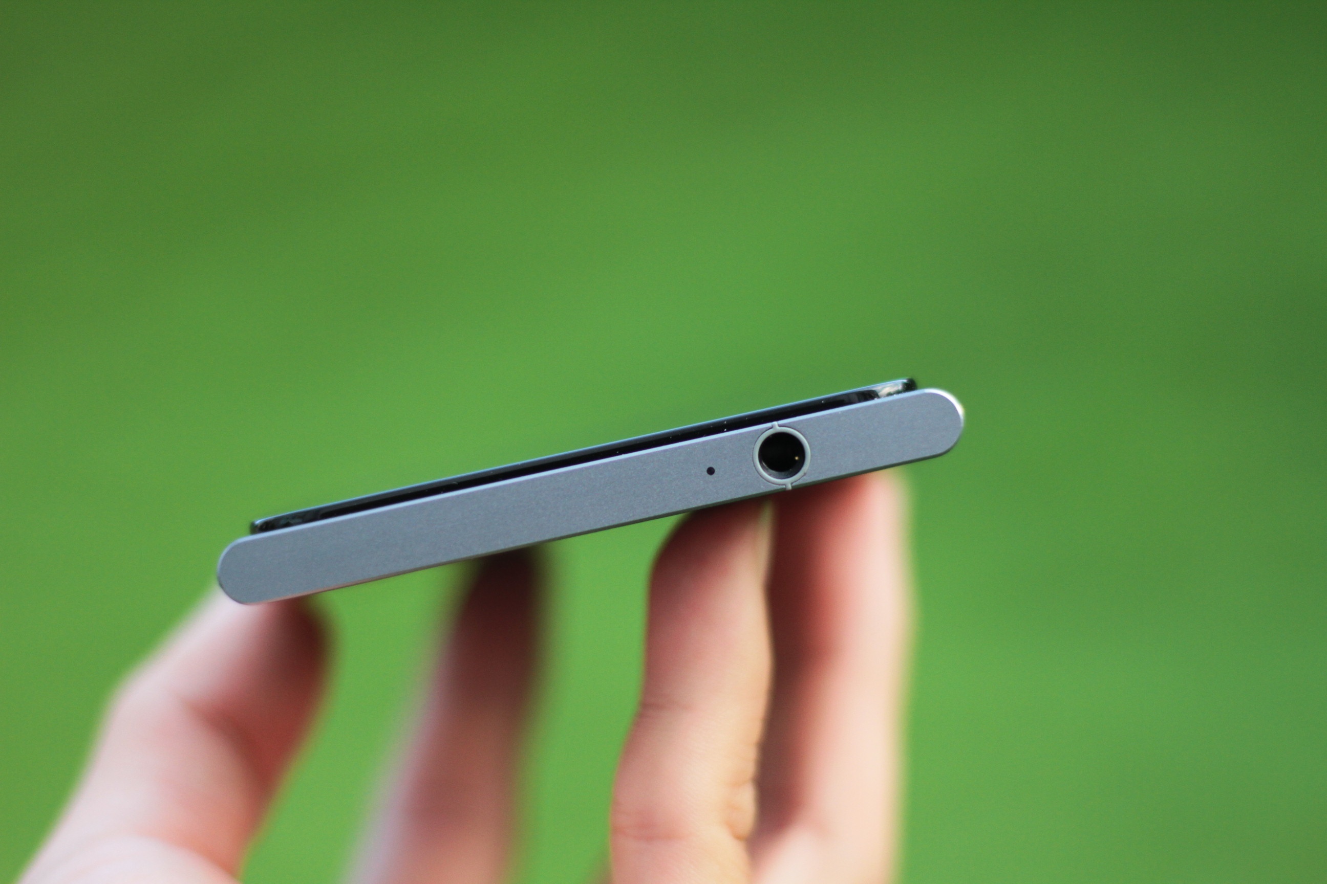 | Phần đỉnh máy được làm phẳng với giác cắm tai nghe 3,5 mm. Kiểu dáng ôm cong của SF1 cho phép cầm thân thiện với tay. |