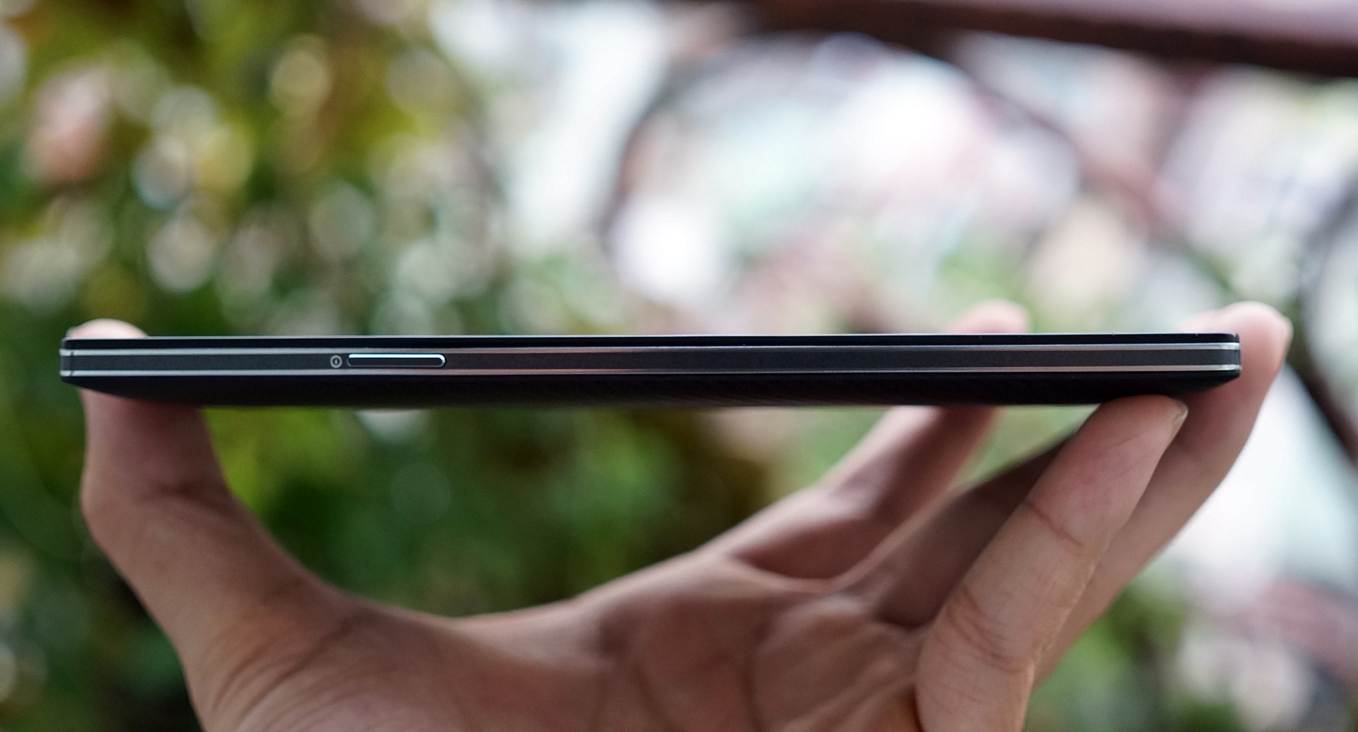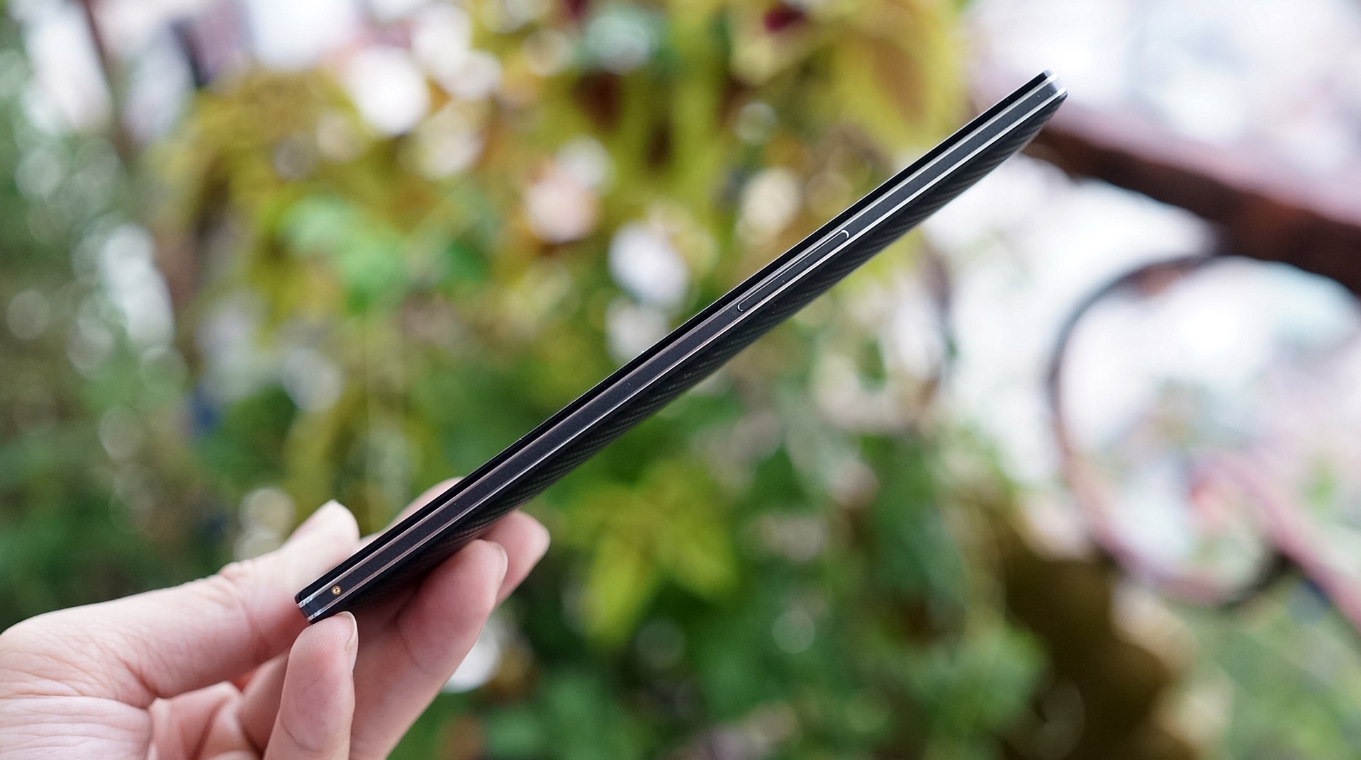 | Find 7 có độ dày khoảng 9,2 mm. Các cạnh bên có hai đường viền kẻ chạy song song. |