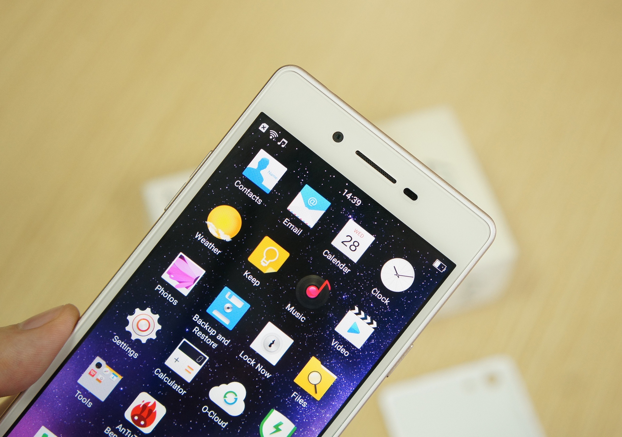 | Máy có dung lượng lưu trữ trong 16 GB, RAM 1 GB và pin 2.420 mAh. Hệ điều hành ColorOS 2.1 không có thanh app drawer. Tất cả các ứng dụng đều hiển thị trên màn hình chủ. Model này cũng hạn chế tối đa các ứng dụng rác. |