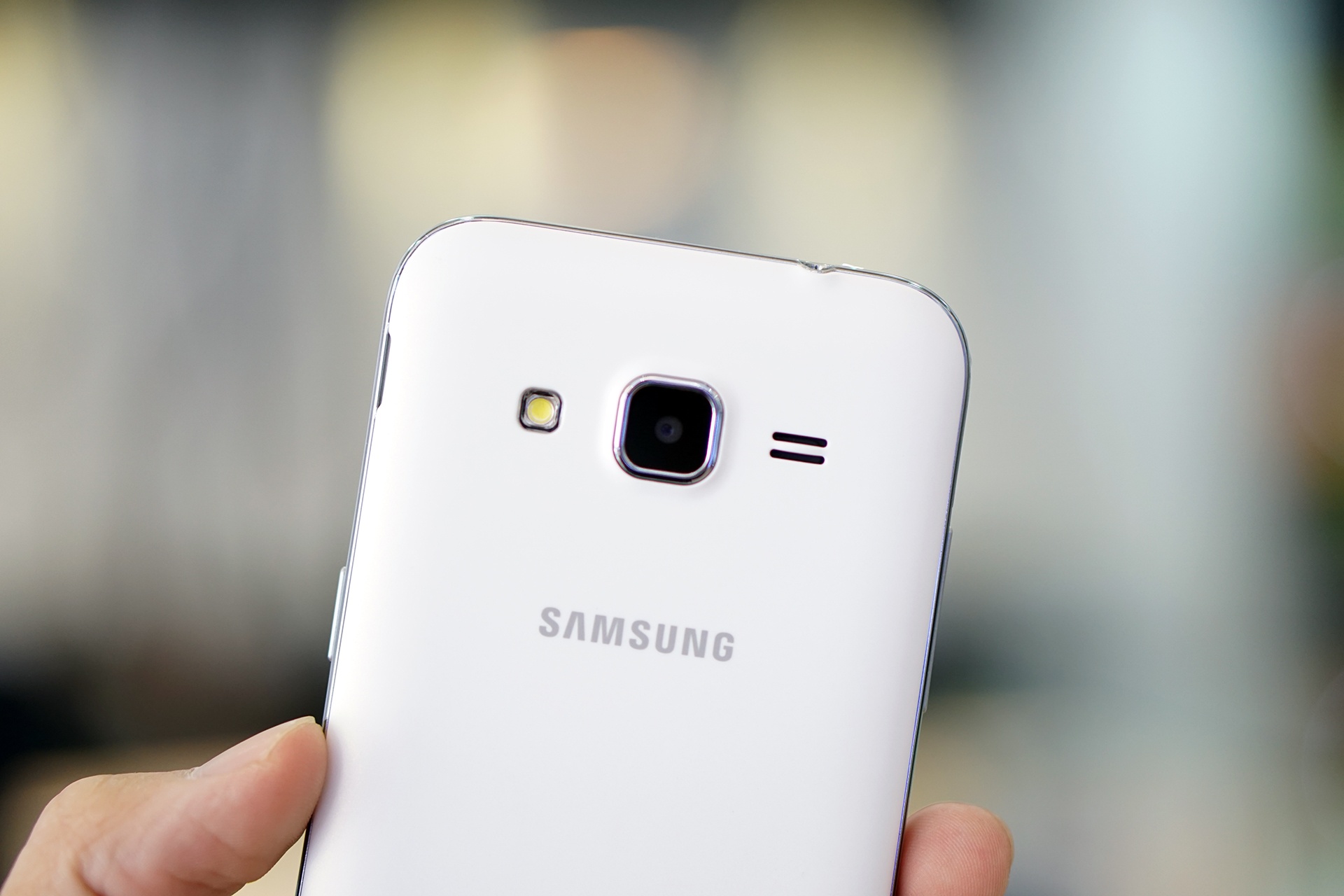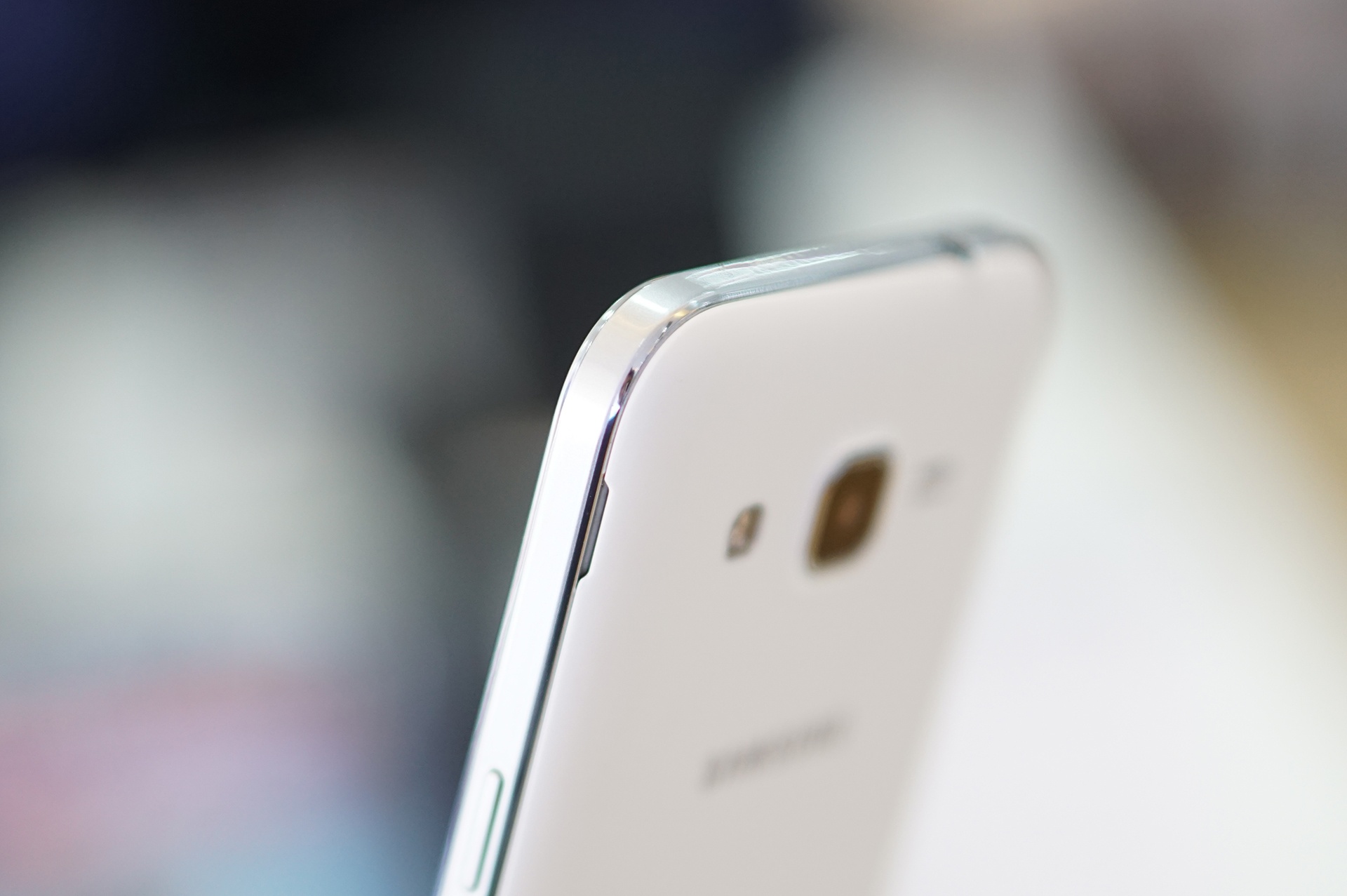 | Samsung vẫn còn sử dụng những đường viền nhựa giả kim loại bao quanh máy nhằm tạo điểm nhấn. Viền nhựa này có dạng tròn thay vì lát cắt kim cương như trên Galaxy A và Galaxy Note 4. |