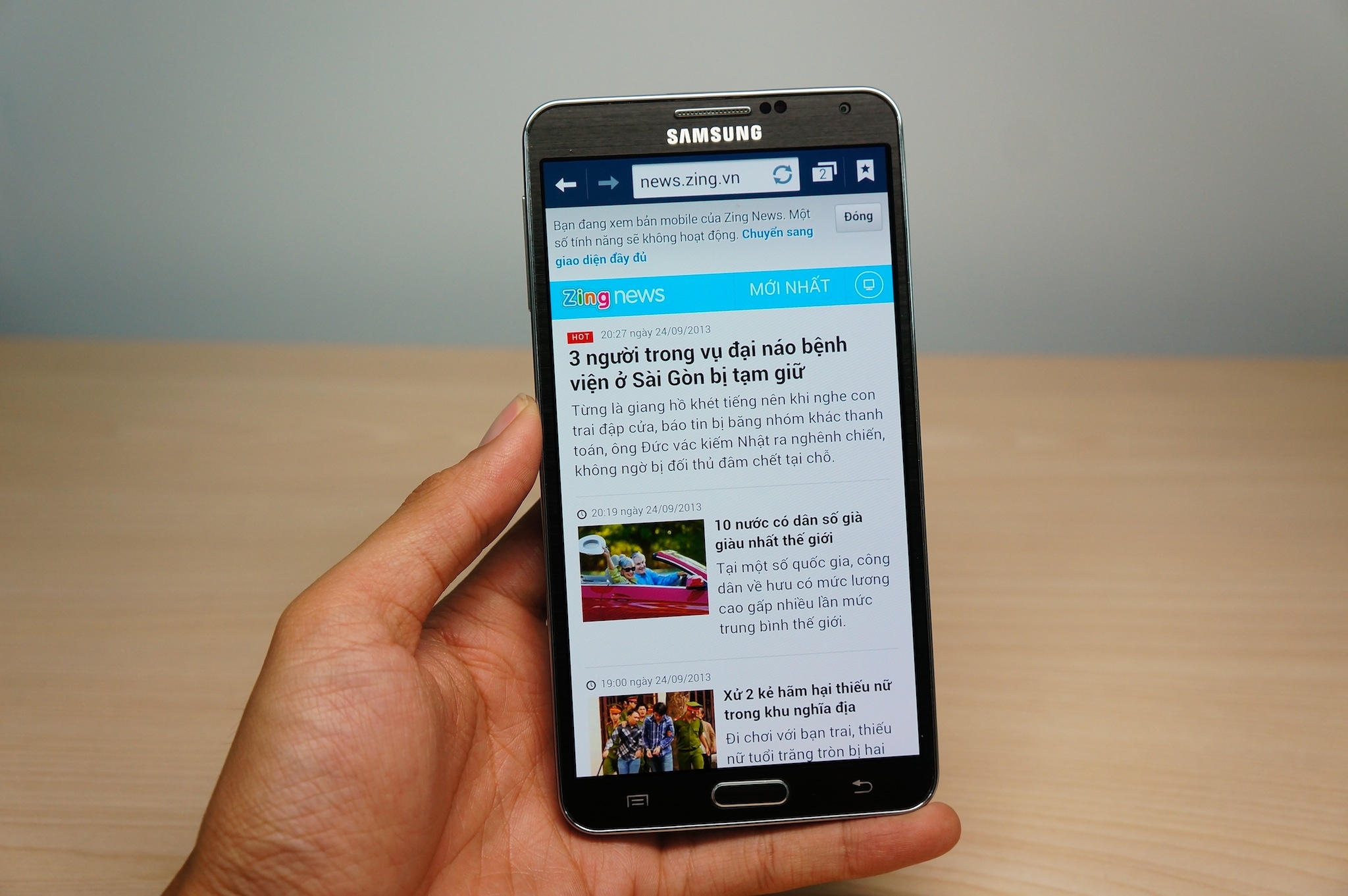 | Máy có tốc độ duyệt web ấn tượng với màn hình rộng giúp hiển thị nhiều thông tin hơn. Với mức giá 16,9 triệu đồng, Note 3 sẽ là đối thủ cạnh tranh với Nokia Lumia 1020, LG G2, Xperia Z1 và HTC One. |