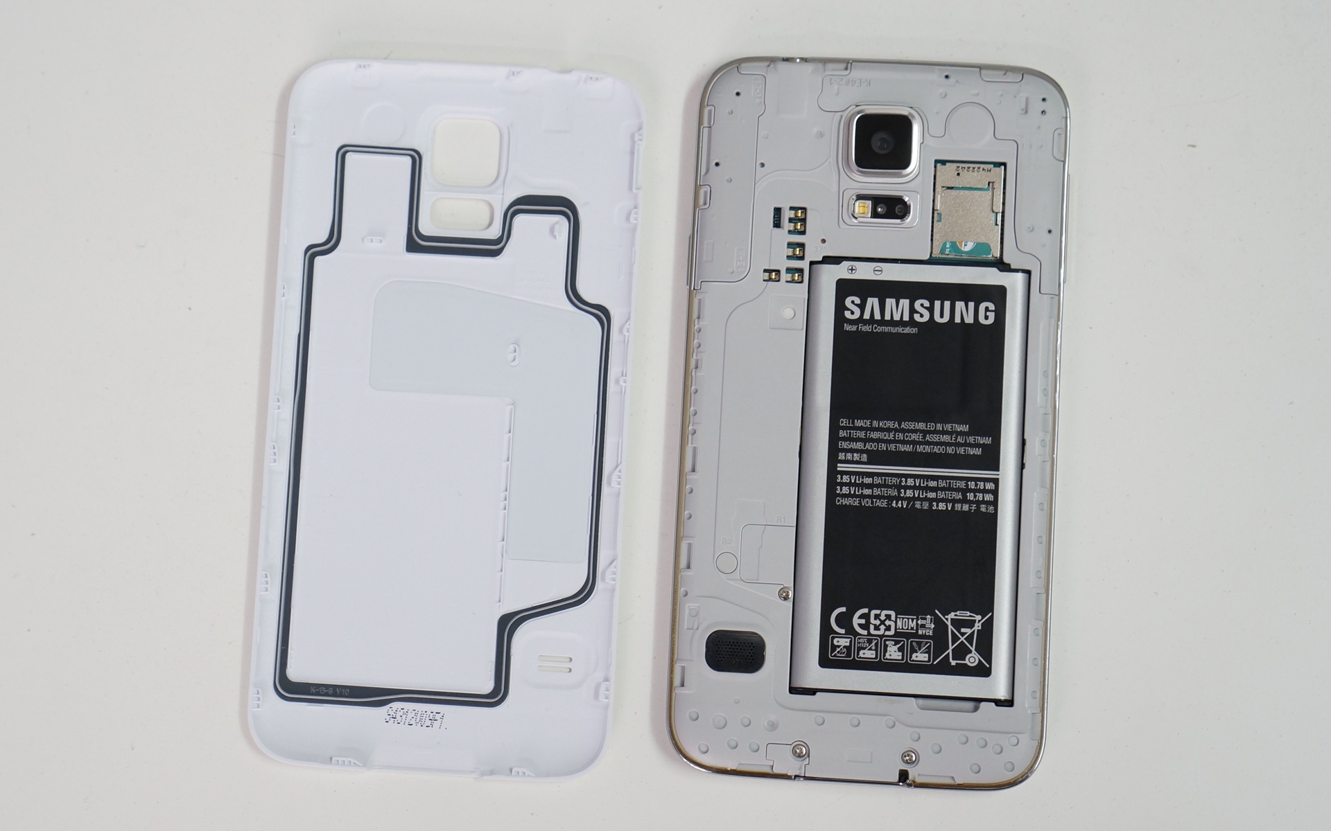 Nắp lưng này có thể tháo rời để thay thế pin. S5 dùng pin 2.800 mAh.