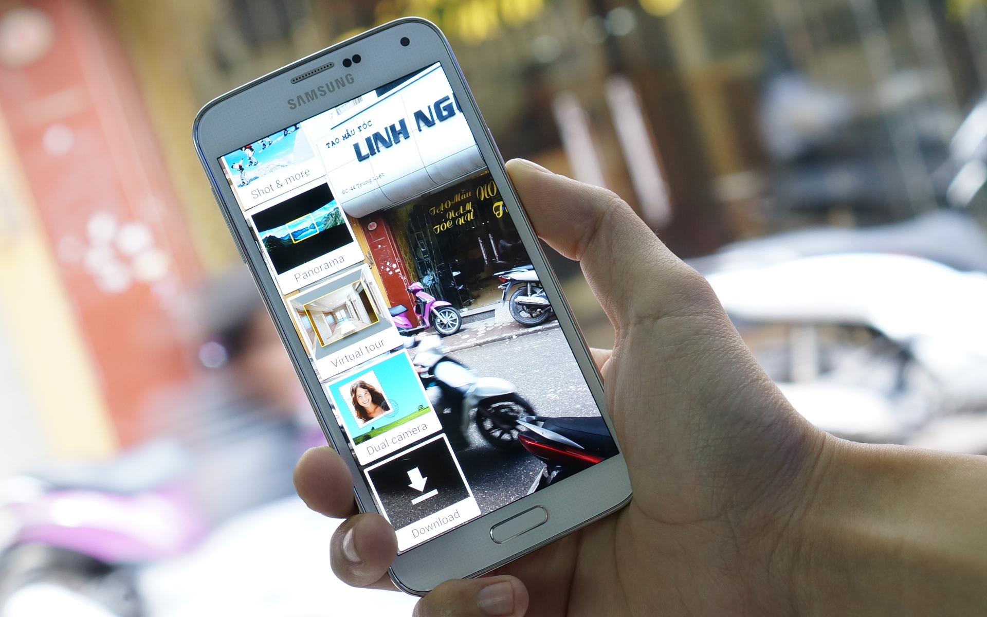 Giao diện chụp ảnh với nhiều chế độ khác nhau từ camera 16 megapixel của Samsung Galaxy S5.